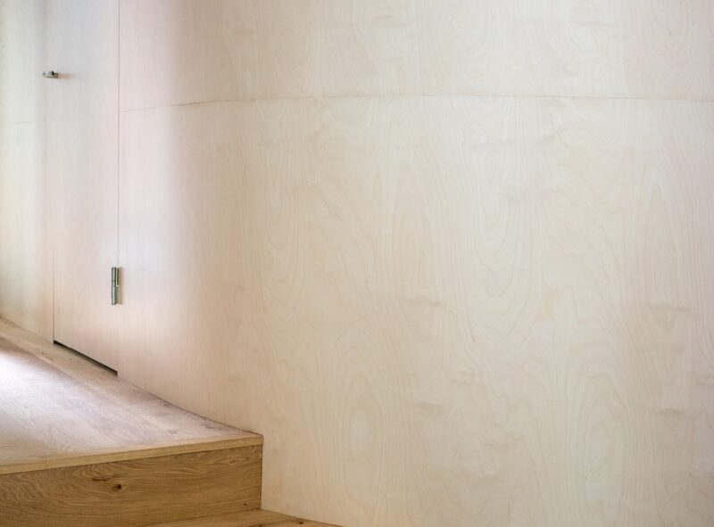 Min morfar var optaget af det gode håndværk og havde en klar holdning til gode materialer og detaljer. Vi har taget os tid til at renovere ordentligt, både gennem projektering og udførelse. Gennemgående træk fra det oprindelige hus, herunder indbyggede skabe, er blevet videreført med nyt liv i en moderne fortolkning, specielt designet til huset og udført af en møbelsnedker. Selv det nye badeværelse, er blevet ét stort indbygget skab, med en buet væg, som tillader at kig og lys kan strømme på tværs af de gamle og nye tilføjelser. De tilbagelagte fuger i det oprindelige murværk, får et modspil i de vertikale pyntelister på den nye træfacade. Det matterede vinduesglas er også videreført. Køkkenets inventar er speciallavet med henblik på at videreføre den oprindelige farvepalette fra de originale køkkenskabslåger, som var slidt ned af brug.