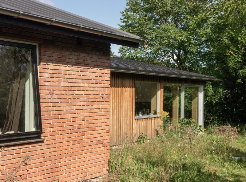Huset er blevet gennemgående renoveret og energioptimeret, da det har været essentielt at fremtidssikre huset. Tilbygningen kiler sig ind mellem det oprindelige hovedhus og garagen, hvilket skaber et relativt kompakt og energieffektivt volumen. Solfangerne på taget er blevet erstattet af et integreret solcelletag med en kapacitet på 10 kWp, hvilket producerer tilstrækkelig strøm til to husstande. Dette suppleres af et jordvarmeanlæg, der sørger for gulvvarme og er blevet integreret i det eksisterende hus. Energimærket fra 2023 viser, at bygningen har energimærke A 2020. Ikke kun er det bæredygtigt, men det giver også økonomisk mening for brugerne set fra et driftsperspektiv. Den nytilførte gulvvarme i nyt og gammelt hus har endvidere resulteret i et nyt trægulv, som ligeledes fungerer som en sømløs sammenbinding mellem nyt og gammelt.