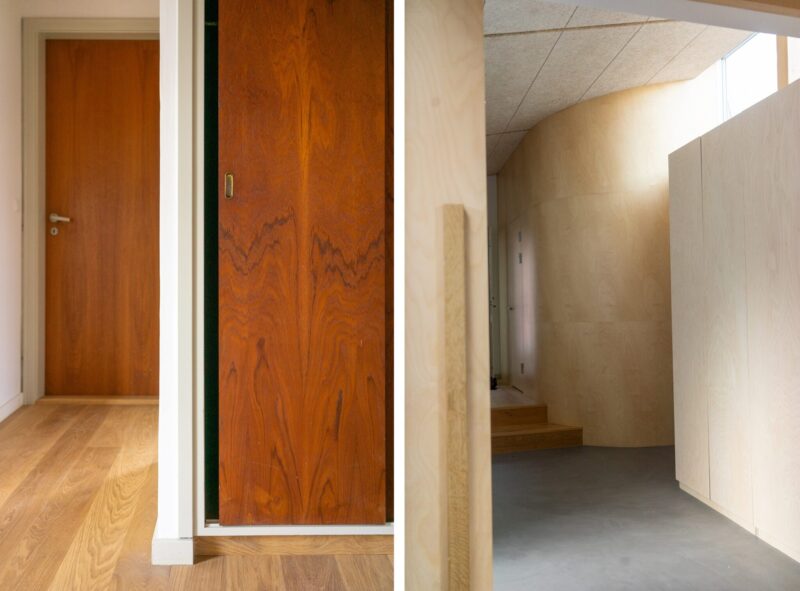 Min mormor og morfar var meget ressourcebevidste mennesker. På den tid var det mere af nødvendighed end af klimabevidsthed. De dyrkede råvarer i baghaven, havde solfangere på taget og genbrugte i stor stil. Det, som andre ikke så værdi i, kunne min morfar genbruge og give et nyt liv. Derfor mente vi naturligvis, at huset skulle genbruges, renoveres og transformeres, fremfor at rives ned - også selvom huset af mange ikke blev tillagt nogen værdi. De indbyggede skabe og finérdøre er blevet nænsomt afinstalleret og renoveret, og der blev værnet om husets detaljer, kendetegn og sjæl. Til renoveringen er der også blevet anvendt nogle af de materialer, som min morfar havde gemt til senere reparationer - og nogle af de komponenter og materialer, som blev høstet ved transformationen, er blevet genanvendt i de nye tilføjelser, såsom dørhåndtagene med alle de spor, som er opstået over tid.