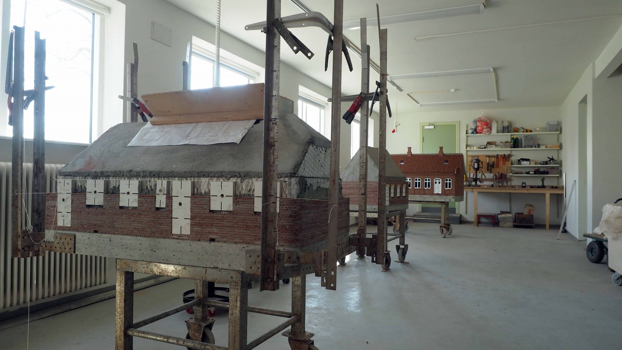 Vinduer sidder højt, og giver derfor gode arbejdsforhold for udførelse af modeller, og endelige minihuse til parken. Det er muligt at opstille større maskiner og hejseværk op langs vægge, uden hensyn til facadevinduer.