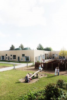 Arkitektonisk spiller de nye rammer sammen med de eksisterende bygninger. Tilbygningerne er opført i robuste, gedigne materialer, der tåler at blive brugt. Sæt dig i vinduesrammerne, spil bold på murene – den kan holde til det. Alt der er tilført er både funktionelt og æstetisk – ovenlysene er rumdannende, giver højde og signalværdi, vinduesrammerne bruges til leg og ophold, og danner nicher ude og inde.