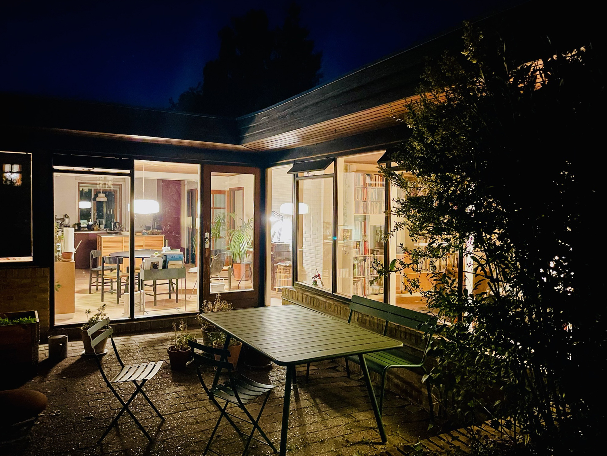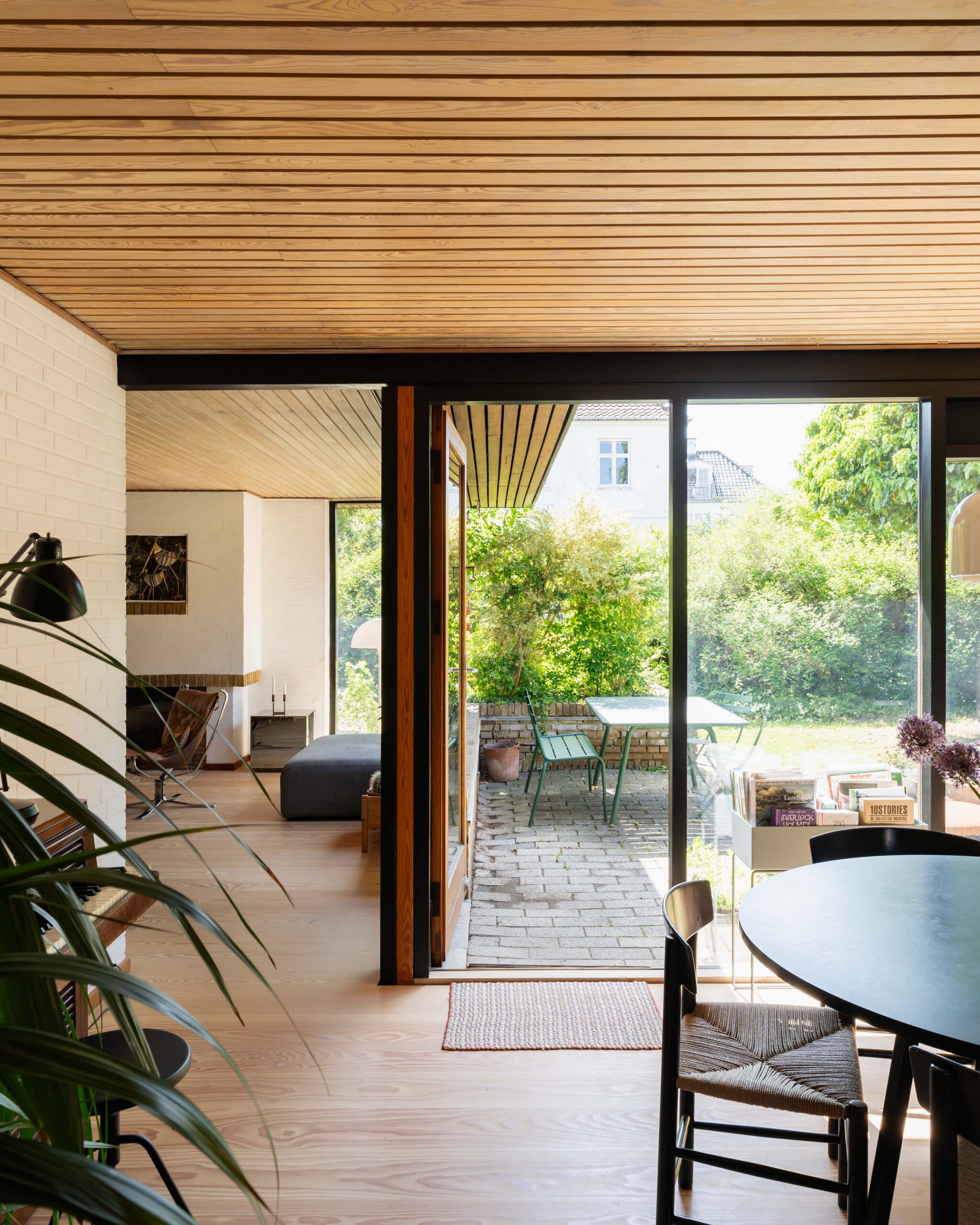 I forbindelse med renoveringen er væggen til det oprindelige lille køkken blevet fjernet, og køkken og spisestue slået sammen. Det giver med et enkelt greb, en åben og levende planløsning, med et gennemlyst køkkenalrum, bedre udnyttelse af dagslyset og optimal kontakt til den smukke have, som omgiver huset.