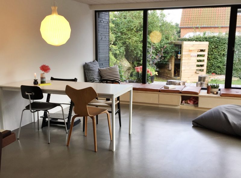Udfordringen var en gammel havestue fra 1960’er, der var “klasket” på murermestervillaen fra 1925. Vi ønskede at gøre kvadratmeterne mere anvendelige, og inddrage dem til beboelse. Den gamle havestue kunne kun bruges få måneder om foråret og sensommeren – om vinteren var den for kold, og om sommeren for varm. Men hvordan bygger man om, så man respekterer den oprindelige bygning? Et dilemma som vi efterfølgende har opdaget, at ret mange danskere med en murermestervilla står i. Her er der tænkt nyt, og rummet er nu blevet favoritrummet at opholde sig i for både børn og voksne.