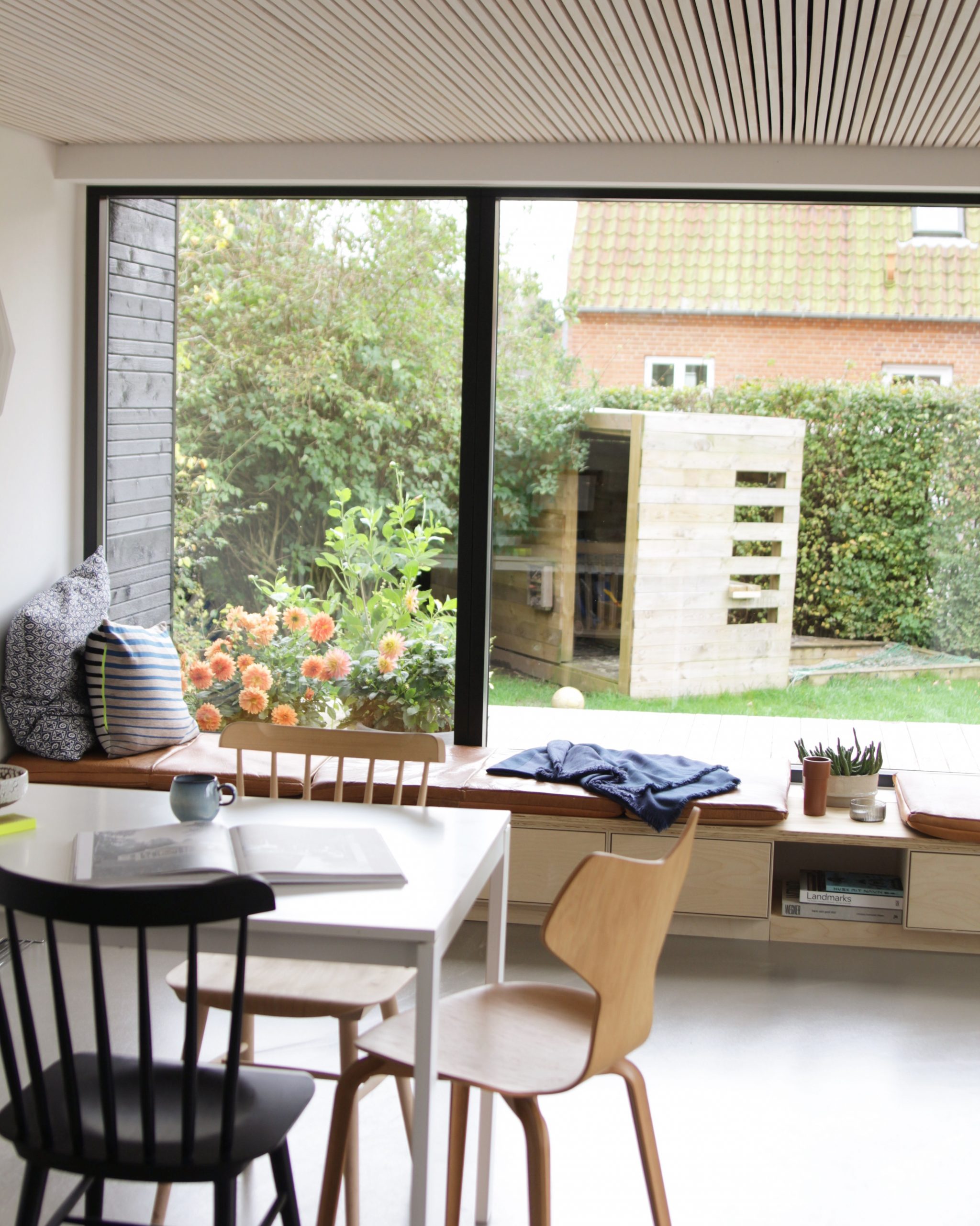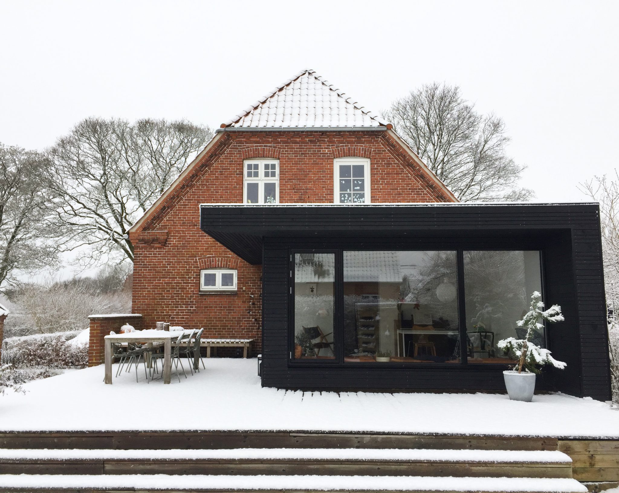 Den klassiske murermester har mange kvaliteter. Men med sine sprossede vinduer, kan lysindfaldet være begrænset. Tilbygningen giver med sine store vinduespartier hele familien mulighed for at følge med i haven året rundt - og ikke mindst et fantastisk lysindfald.