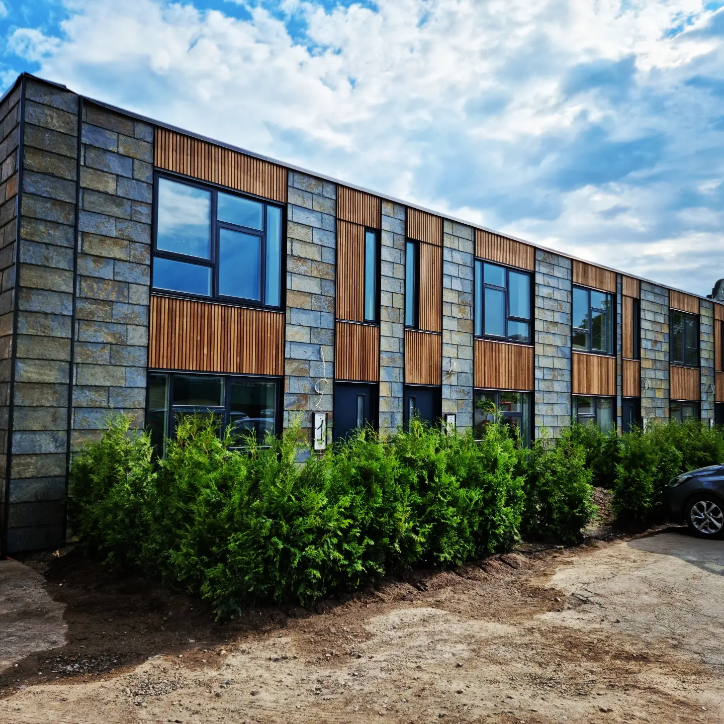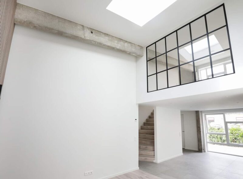 Den gamle lastvogns garage i beton fra et lukket vognmandsfirma fra 195o'erne, er ombygget til 5 rækkehuse i Slagelse Midtby. Indrettet luftigt med New Yorker loft inspiration.