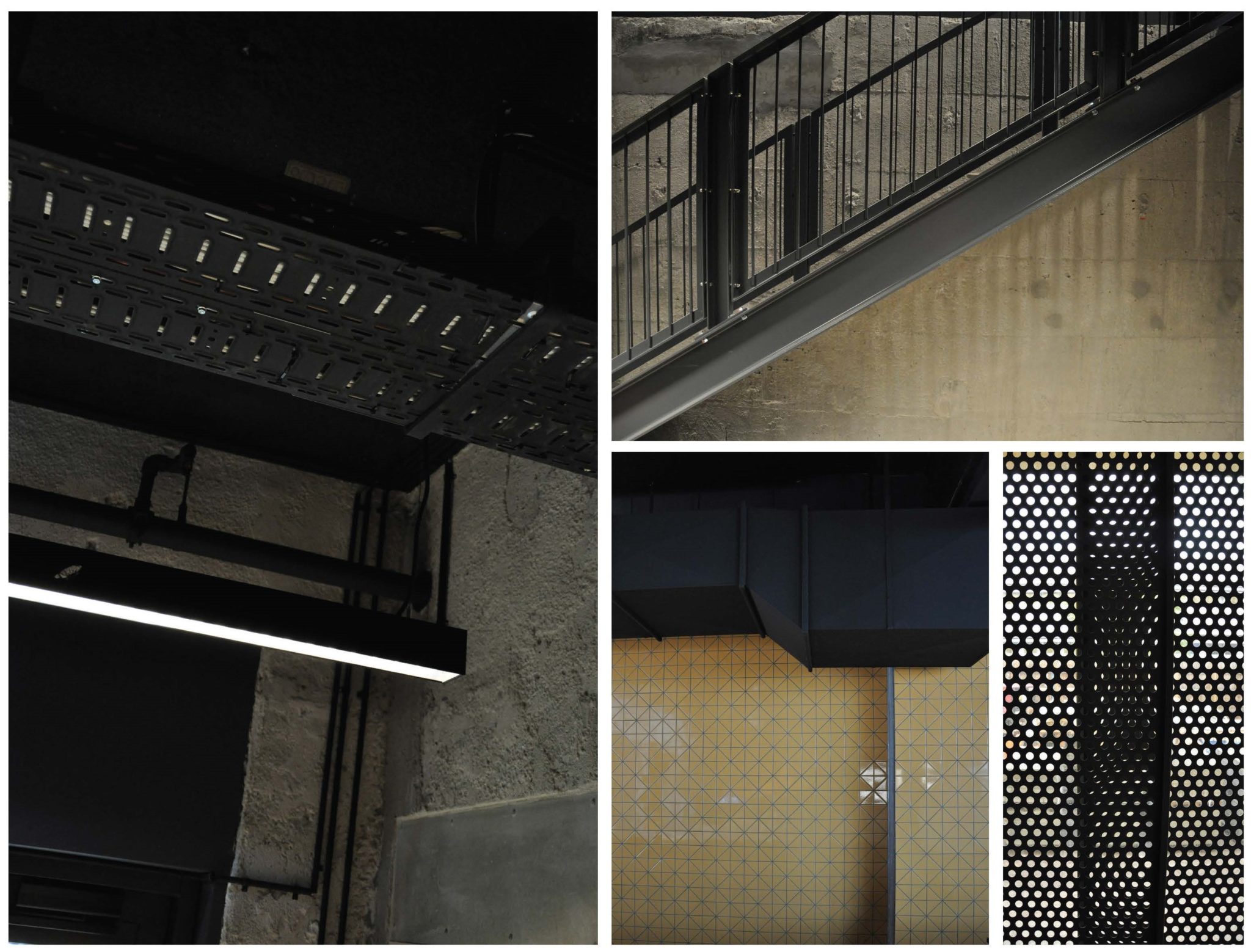 Design konceptet har konstant været ikke at skjule hverken installationer eller ekisterende konstruktioner, og dermed styrke kontrasten imellem det ny og det eksisterende og dermed fortællingen om transformationen af huset.