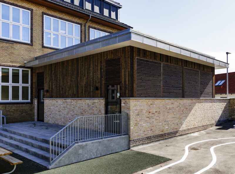 En stor del af eksisterende fundament, mure og tagkonstruktion er bevaret og genanvendt i udvidelsen, hvilket giver projektet en solid base med minimalt ressourceforbrug. En nødvendig udvidelse af ydermurene er udført med teglsten fra de eksisterende nedrevne mure, suppleret med nøje udvalgte genbrugssten, hvilket skaber et harmonisk og autentisk udtryk, hvor nyt og gammelt smelter sammen.
