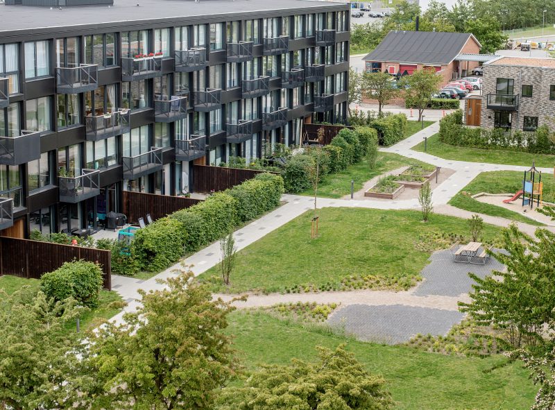 Beboerne har aktivt medvirket til en supplerende møblering af de fælles gårdhaver ved i fællesskab at vælge legeredskaber, bord-bænkesæt og hvilemøbler. De mange nye udendørs aktiviteter, så som ude-fitness, fodboldgolf m.v., er hurtigt blevet en del af beboernes udeliv, ligesom de mange opholdszoner er blevet indtaget af såvel unge som ældre.