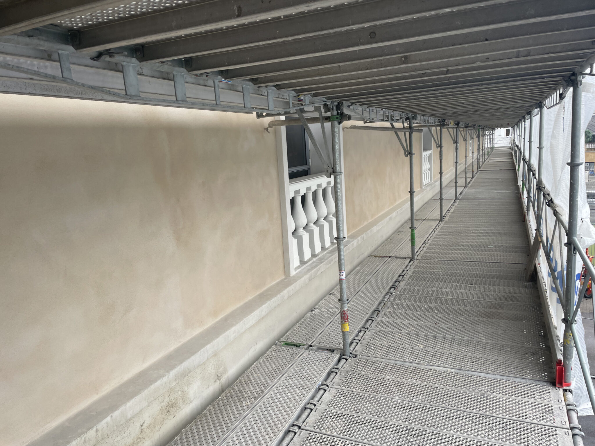 Facaderenoveringen havde en række komplekse arkitektoniske udtryk, som gesimser, balustre mv. i en kombination af murværk og beton, der efter fjernelse af eksisterende overflader viste adskillige udfordringer i forbindelse med den oprindelige konstruktion, grundet omfattende nedbrydning af bærende konstruktioner både inde og ude, samt uhensigtsmæssige løsninger fra opførelsen.