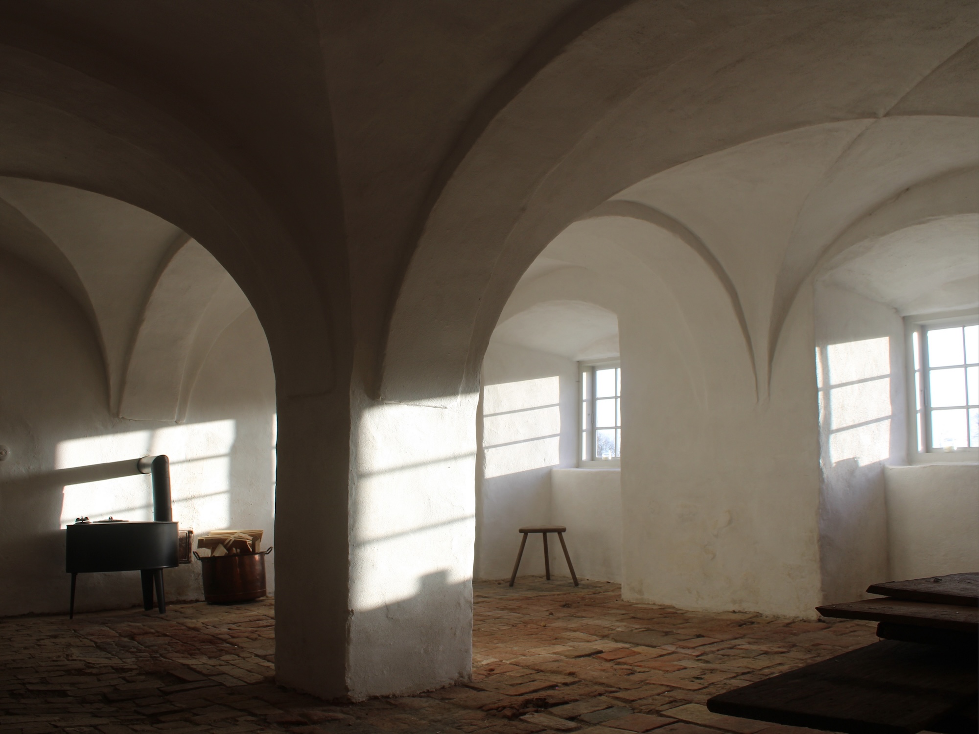 - Hele kælderetagen havde stået funktionstom siden 1800-tallet, så her har vi genaktiveret samtlige rum og har fysisk genåbnet forbindelser til hele etagen og indrettet nye køkken-, toilet- og badefaciliteter samt opholdsrum.