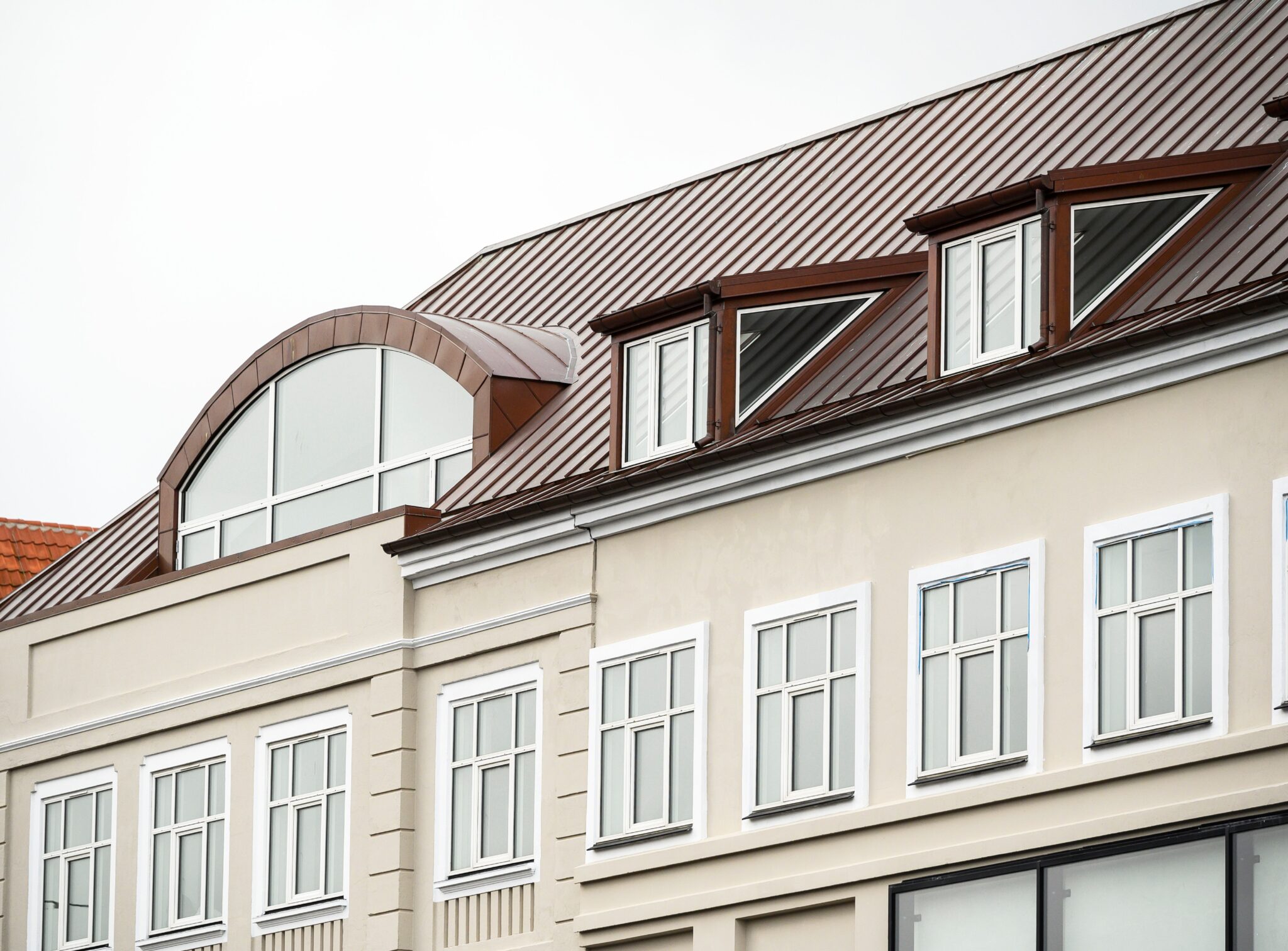 Gennem en større renovering og med sans for ejendommens historie og placering i byen, har tagetagen fået nyt liv. De røde teglsten er blevet udskiftet med et helt nyt kobbertag. Tagfladen er tilføjet nye taskekviste med glas i flunke. En rundbuekvist og attika er blevet opført med reference til de tidligere frontispicer med rundbuekviste og tårnet er blevet udvidet, så det nu har fået en base at stå på. Alt dette tilsammen gør, at tagetagen nu visuelt afspejler en funktionsmæssig ligeværdighed med bygningens øvrige etager og det må i sandheden være til stor eksempelværdi for kommende renoveringer af lignende ejendomme.