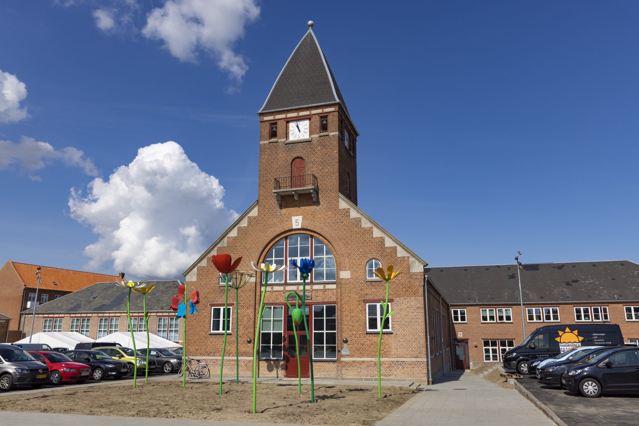 Den tidligere skolegård har undergået en større forandring, og står i dag som et offentligt gårdrum med opholdsarealer omgivet af terrasserede bede med stauder, græsser og buske, som giver et frodigt og foranderligt udtryk hen over året. Gårdrummets resterende asfaltarealer får en multifunktionel anvendelse, dels som parkering for de ansatte i dagtimerne, mens arealerne kan anvendes til andre aktiviteter om aftenen og i weekender.