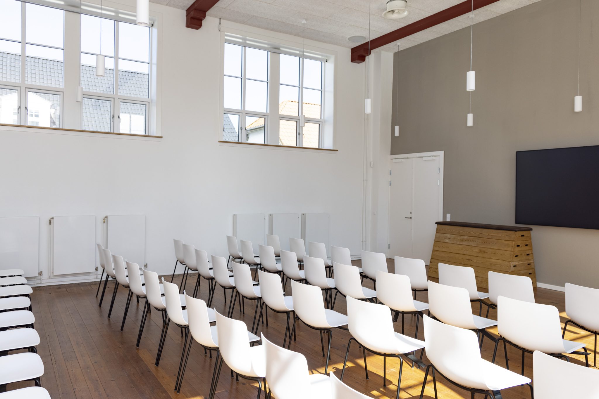 Den gamle Østre Skole rummer desuden endnu et til møde- og samlingsrum, som også er en af skolens tidligere gymnastiksale. I rummet er opsat mindre mødelokaler i glas, så ansatte og besøgende kan fornemme helheden i rummet og dets historie.