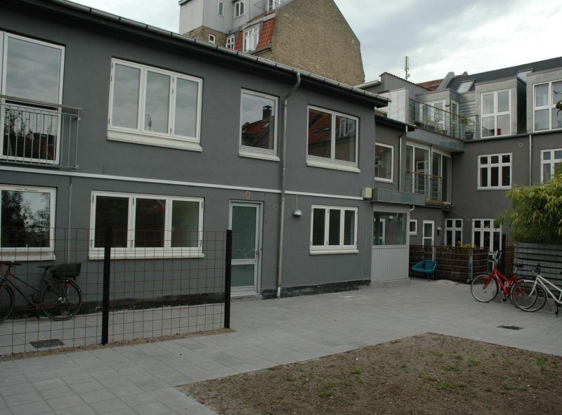 Kombinationen af både et privat udeophold og en fælles gård højner brugsværdien af boligerne i særlig grad.