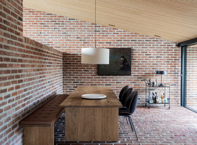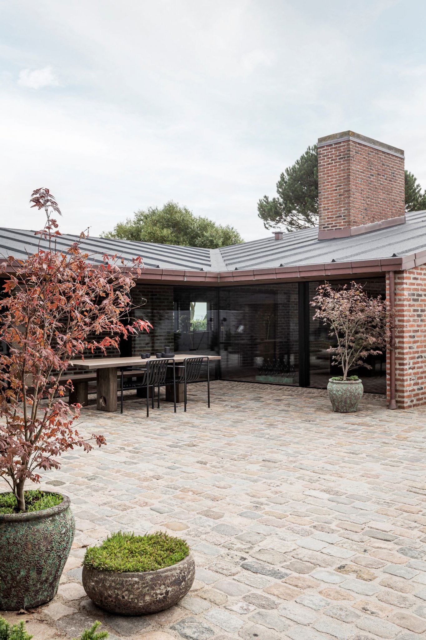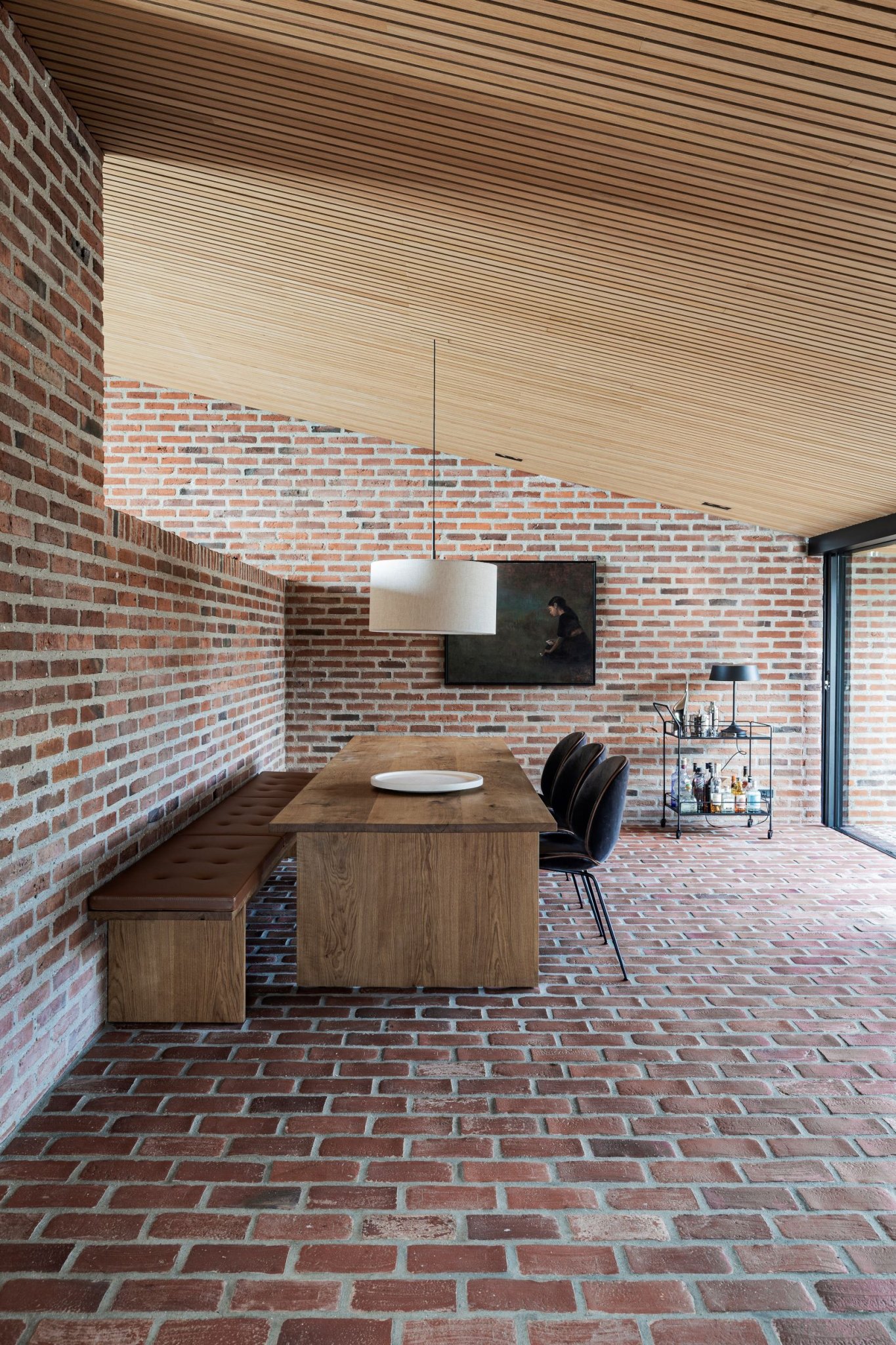 Villa H16 er et godt eksempel på et projekt, hvor der bliver gået en ekstra mil for at respektere og tilgå huset på en respektfuld måde både indenfor materialevalg og det håndværksmæssige. For at få gulvvarme er hver sten nænsomt taget op, renset og halveret for at få plads til gulvvarme. Det samme gælder ved den mindre tilbygning på 20 m² i stuen. Her er der genbrugt sten fra en nedbrudt havemur, så der var nok af de oprindelige teglsten til at udvide facaden. Den tilføjede mur, hvor der ikke var nok sten er udført i et materiale der allerede findes i huset. Den nye mur er udført i beton så den matcher overlæggeren over vinduerne. Derudover blev der lavet utallige prøver til at finde det helt præcise udtryk til fugen med strandsand i.