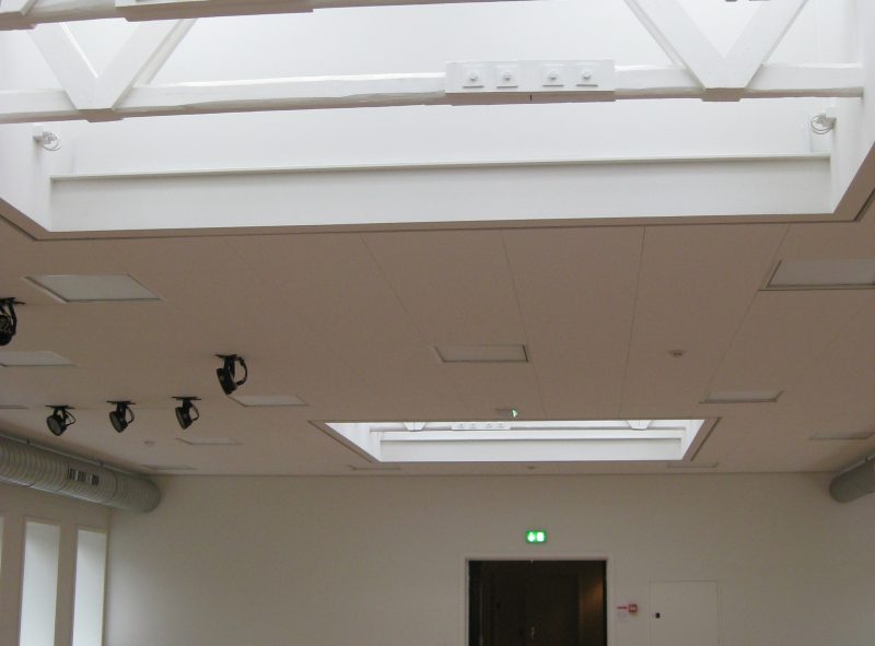 – de store ovenlys i tagkonstruktionen på bygningens 1. sal