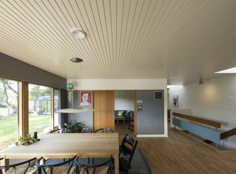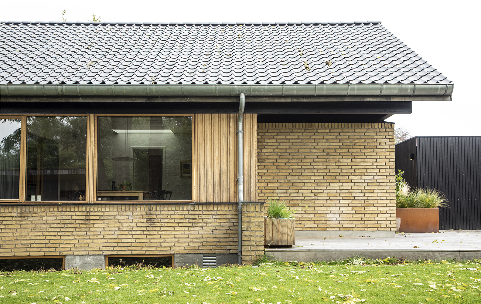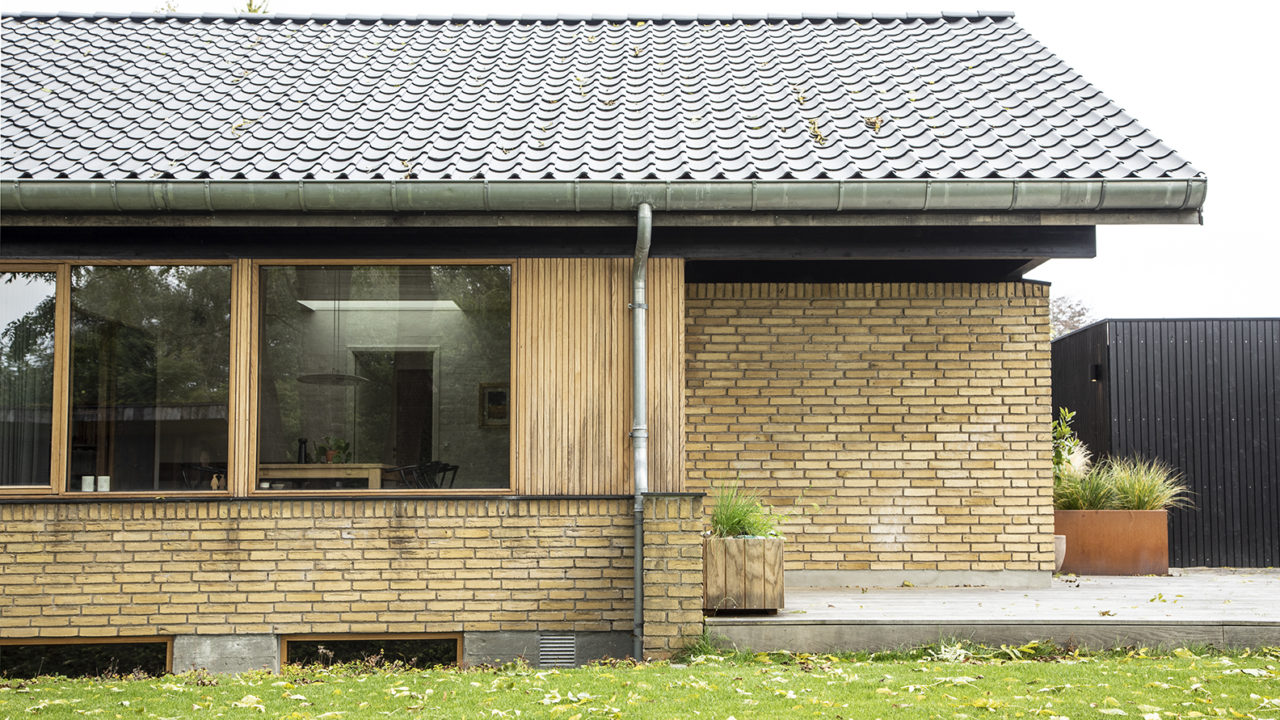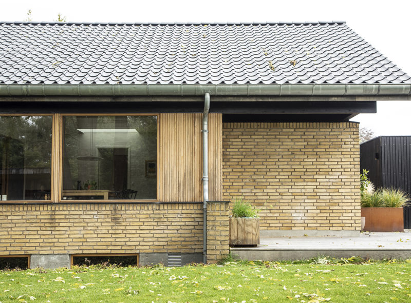 Husets fine proportioner og arkitektoniske greb er søgt forstærket. Egetræs- vinduer og træbeklædning opleves som et samlet bånd, der fremhæver husets linjer og teglens stoflige kvaliteter.