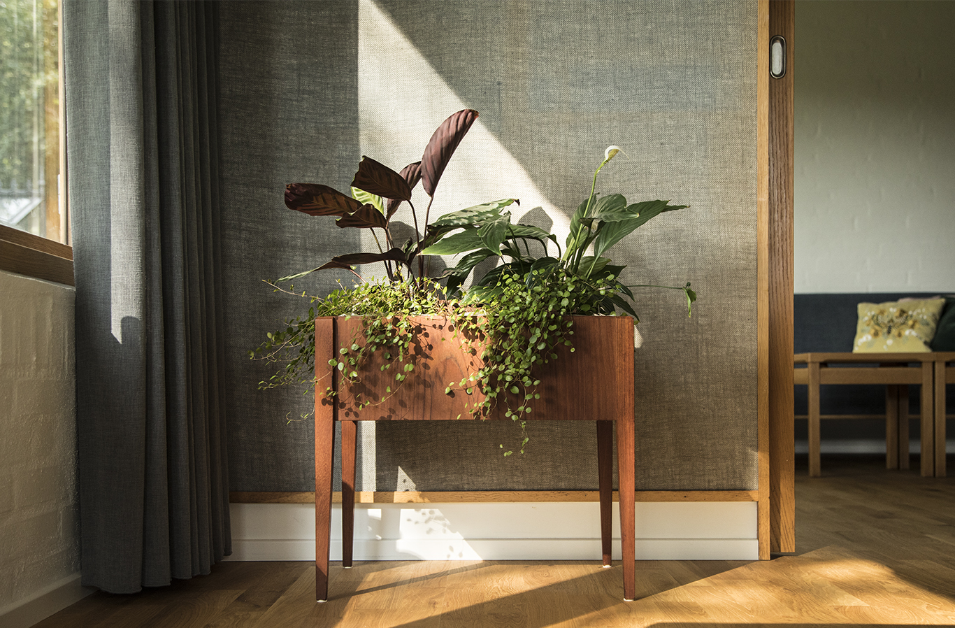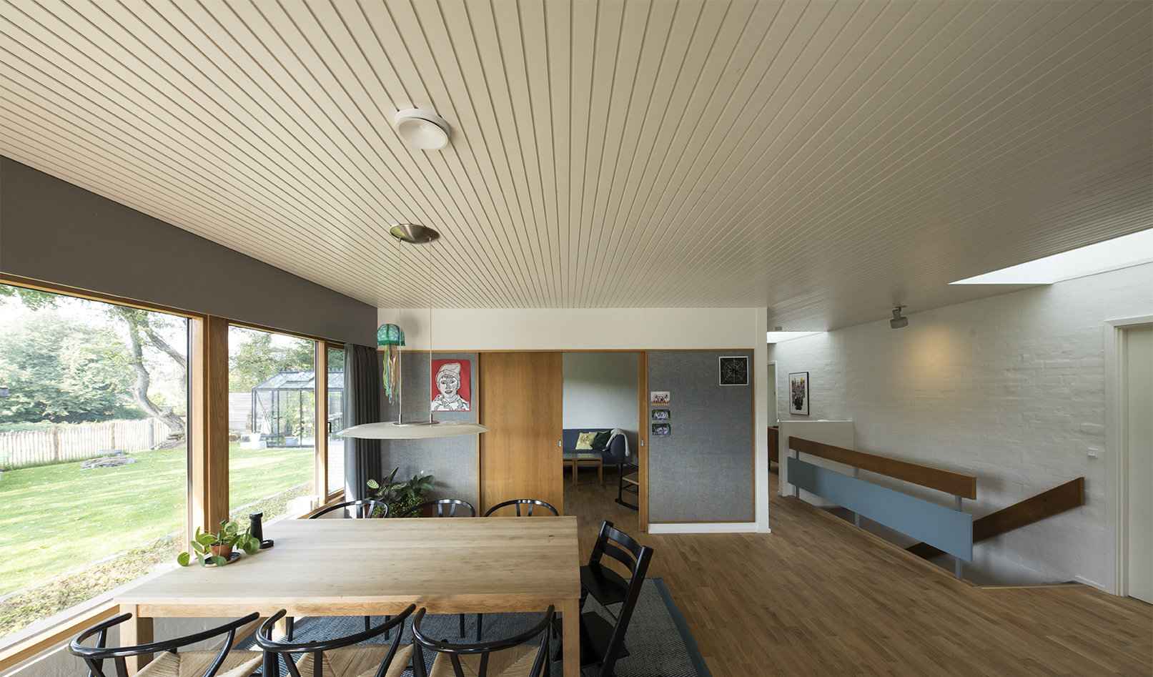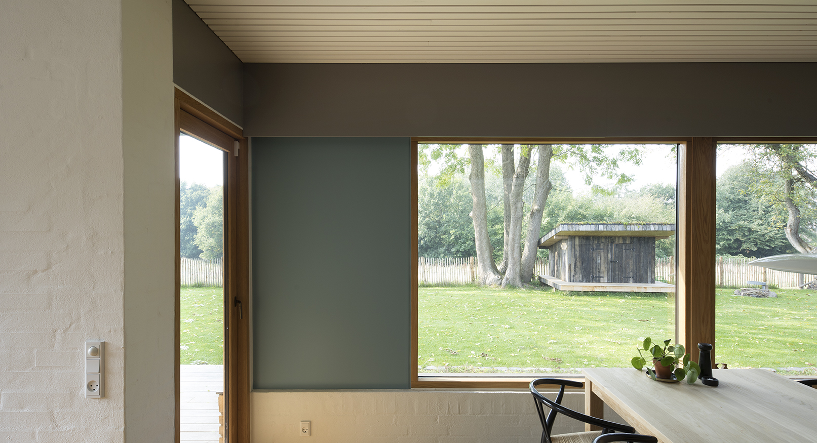 Husets fine proportioner og arkitektoniske greb er søgt forstærket. Egetræs- vinduer og træbeklædning opleves som et samlet bånd, der fremhæver husets linjer og teglens stoflige kvaliteter.