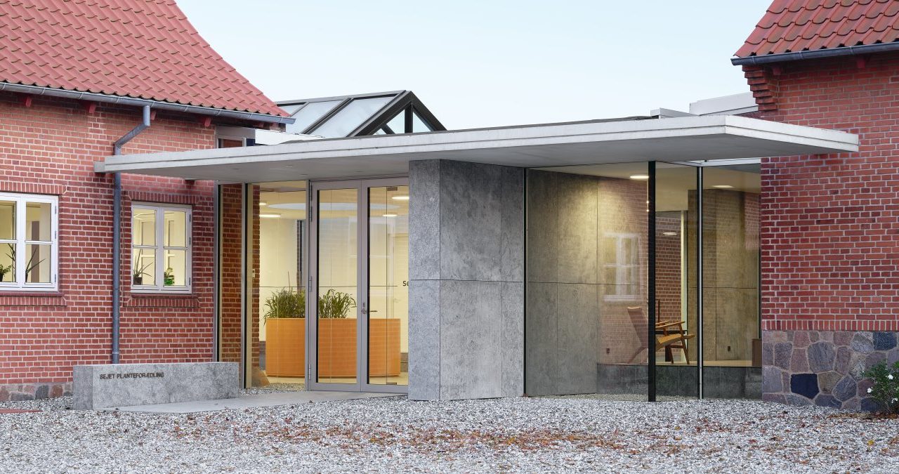 Den nye indgang til Sejet Planteforædling fremstår enkel og let i sit arkitektoniske udtryk og komplimenterer de eksisterende fine bygninger. Sejet Planteforædling lever af naturen på naturens præmis, en fortælling vi afspejler i arkitekturen ved at trække grus og kornplanter med ind i bygningen – på denne måde sløres overgangen mellem ude- og inde rum. En detalje der bidrager med stemning og karakter til de enkle og eksklusive rum.