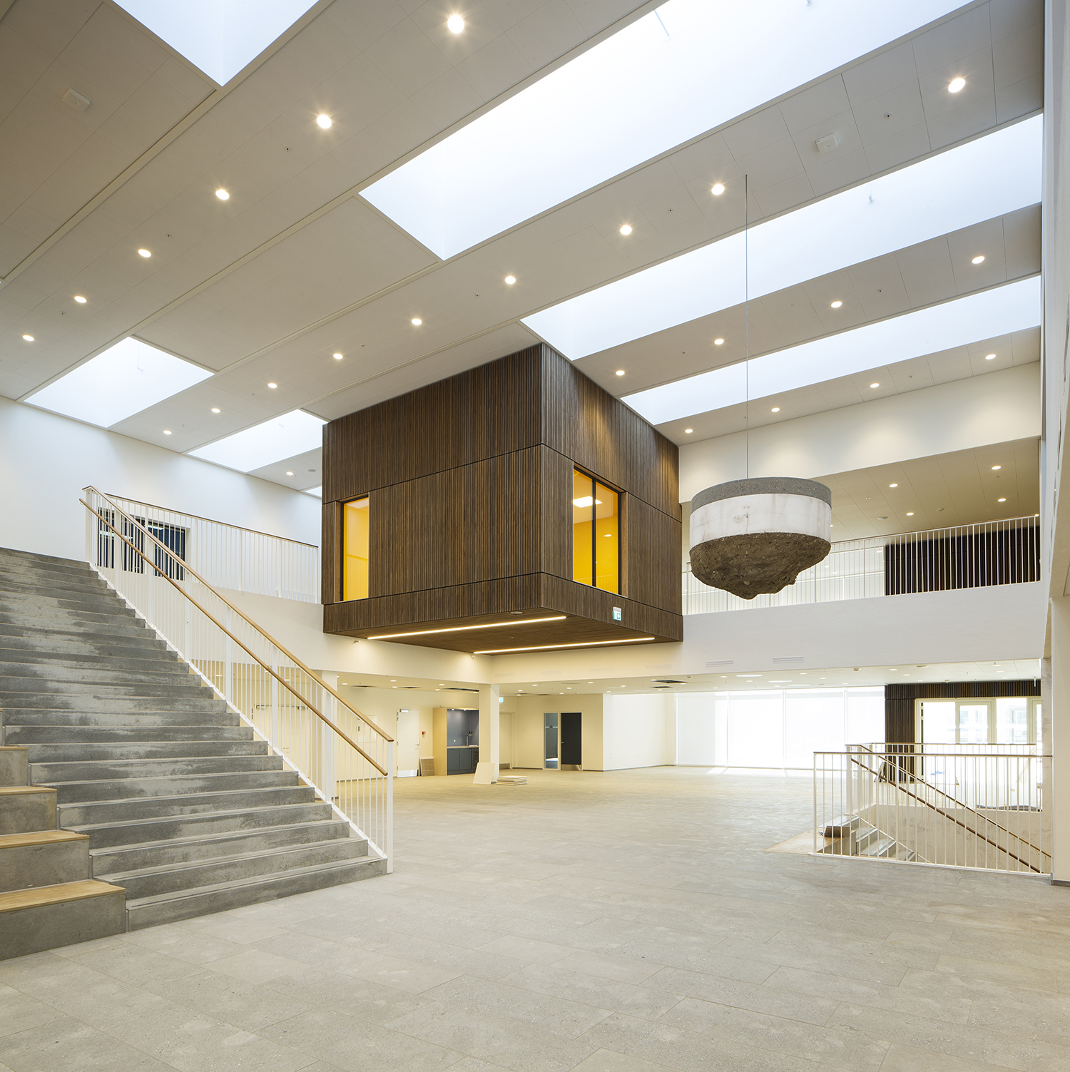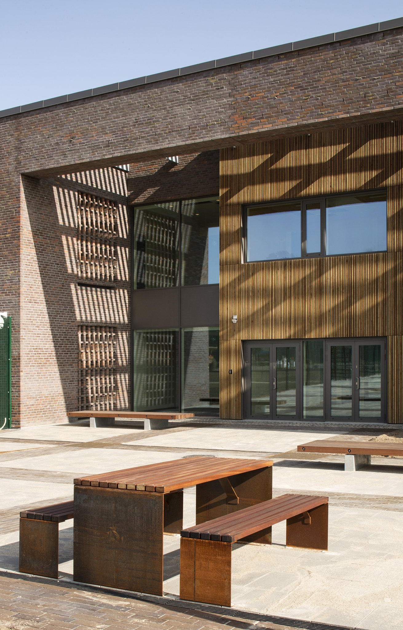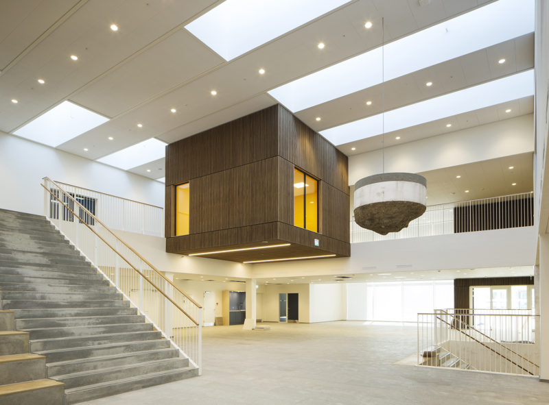 Projektets funktionelle spændvidde har skullet løses i en kombination af ombygning og nybyggeri i et sammenhængende og kontrastfyldt undervisningsmiljø af både inde- og uderum. Det er lykkedes at udnytte de eksisterende bygninger optimalt, og samtidig skabe nye rammer om skolens centrale undervisningsrum.