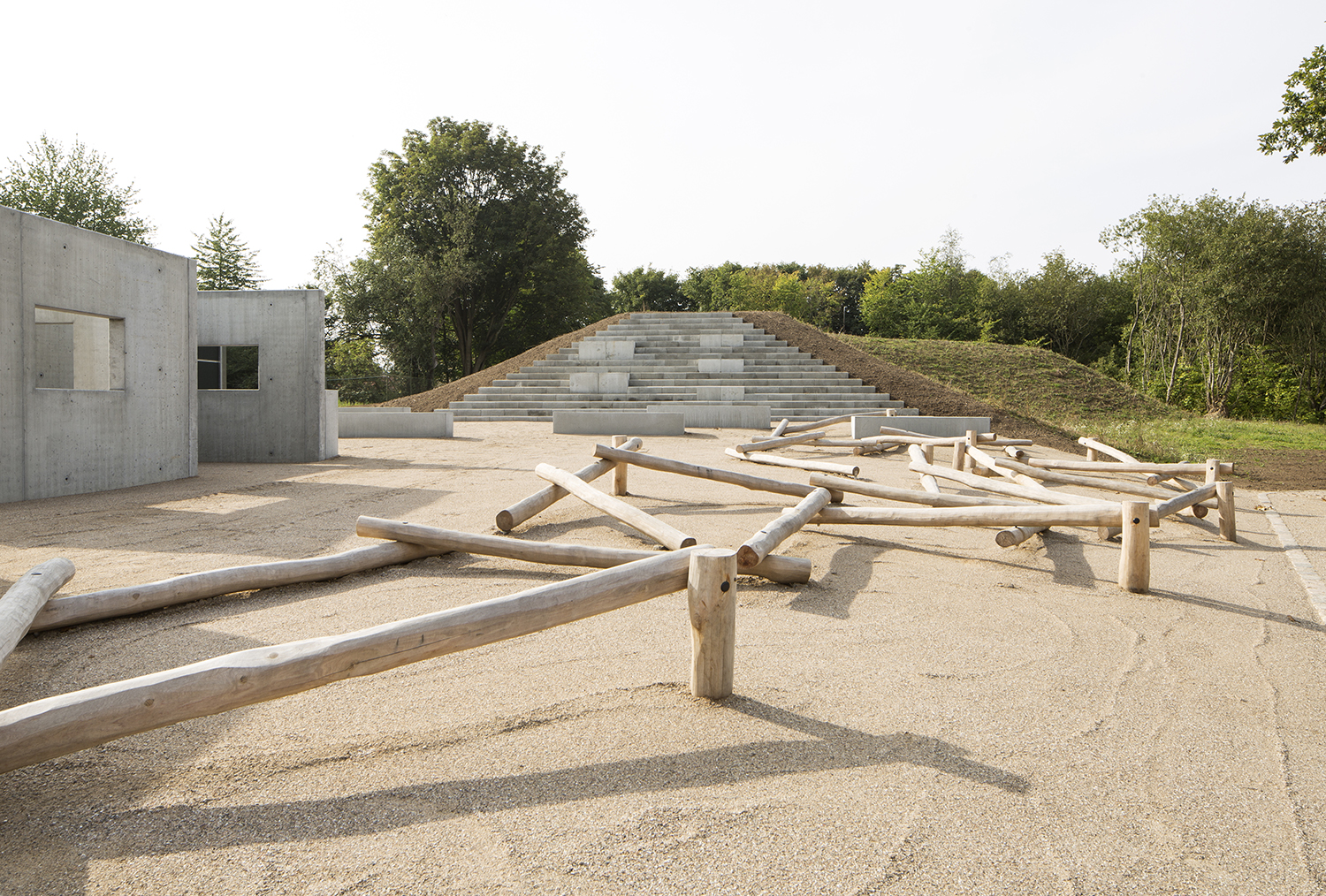 Trods bygningens karakter er kun en begrænset del sikret. Det betyder, at de grønne områder og træningsfaciliteter er offentligt tilgængelige.