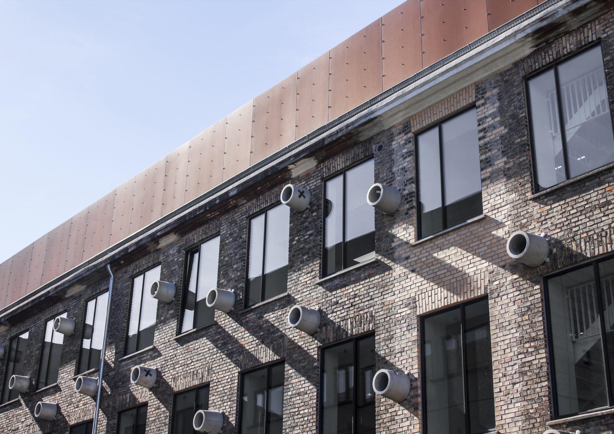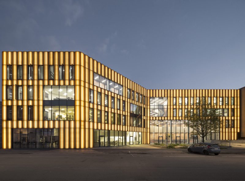 I dag står Professionshøjskolen Metropol færdig med sin justerbare, lysende facade i rå cortenstål. Facadeløsningen markerer skolen som en markant tilføjelse til det eksisterende gadebillede: Metropol er sin egen – med eget særpræg og en tydelig visuel identitet. Den rå stål trækker sig i et definerende bånd forbi hovedindgangen og binder eksisterende og nye bygninger sammen for til slut at indtage tagetagen på det gamle bevaringsværdige praksis- og innovationshus. Selvsamme praksis- og innovationshus er vokset en etage i højden, hvilket har givet plads til nye, større undervisningslokaler. Bygningen er udsmykket af kunstneren Anders Abrahamsen og står med en karakterfuld facadeornamentik i form af koniske rør støbt i beton. Den færdigrenoverede professionsskole er umiskendeligt sig selv, samtidig med at arkitekturen anerkender og komplementerer det byområde, skolen er en del af i Sigurdsgade på Ydre Nørrebro – et upoleret område med små værksteder, studier og småindustri, som ligger side om side med det gamle kaffebrænderi ’Merkur’.