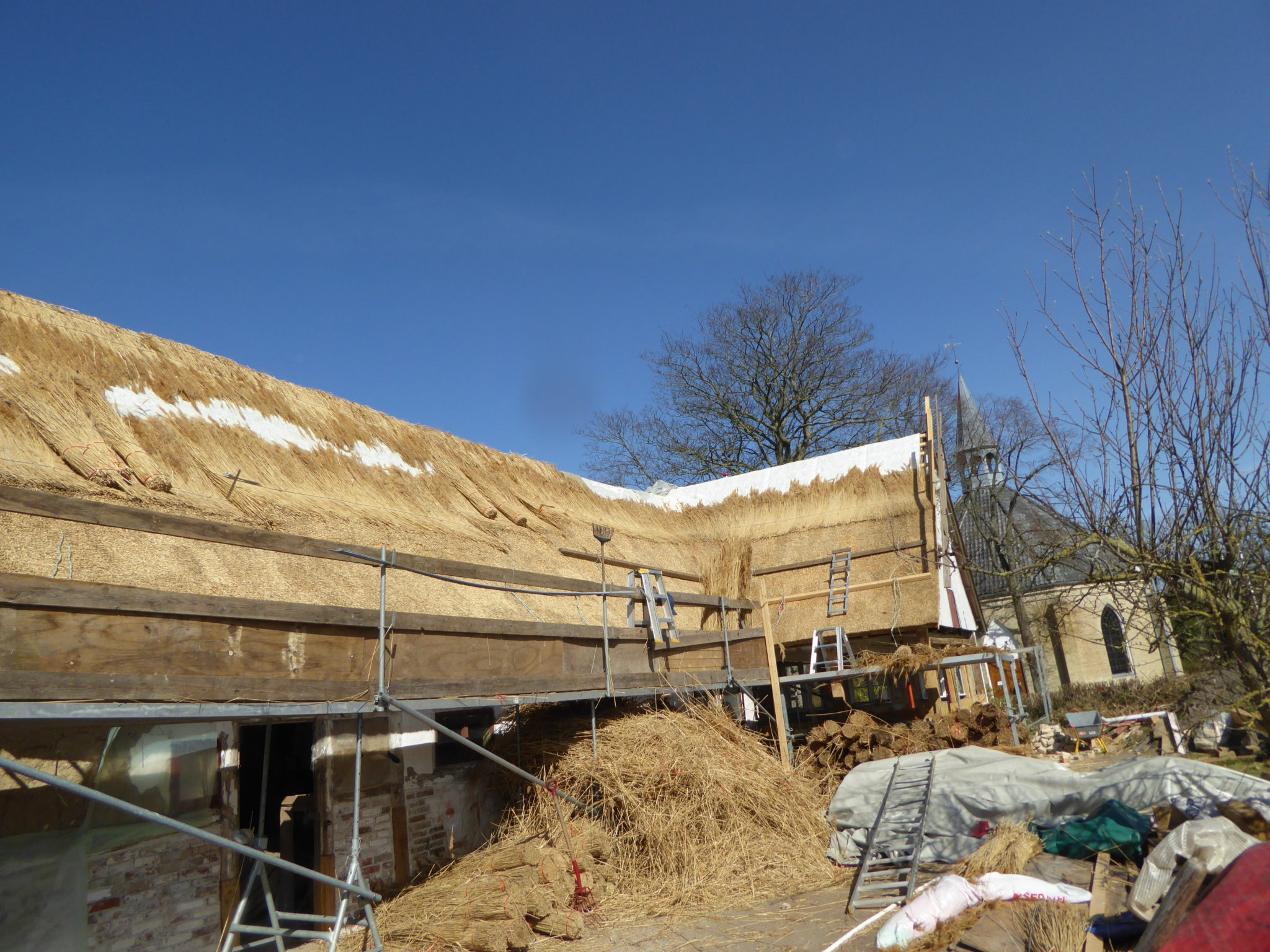 Ejendommen er renoveret til en meget høj kvalitet. Eksisterende materialer/ejendomskomponenter er blevet renoveret, hvor det har været muligt, men mange elementer er nye. Vestfløjens bindingsværkskonstruktion er næsten ny. Man ser det ikke nødvendigvis, da der fortsat findes en meget gammel væg, der hælder mod den gamle mødding. Men den bærer ikke taget længere, der står en helt ny konstruktion ved siden af. Den skæve væg er bevaret dels fordi den er et særkende ved gården dels fordi den af afbilledet i Acton Friis ”De Danske Øer”. Ny bindingsværkskonstruktion er lavet af dansk egetræ og udført af lokale (dygtige) bindingsværkstømrere. Stråtags entreprisen er ligeledes udført af lokal tækker. Der udført ny pigstensbelægning i gård og langs kanter. Særlige revledøre er blevet fremstillet og malet med gårdens originale farve. Arkitekt Søren Vadstrup har rådgivet om kvalitet og materialer. Et større hold arkitektstuderende (70 i alt) fra renoveringslinien tilbragte en dag på gården og blev instrueret i at udføre lervægge, lægge pigsten mm. Bygherren er af den opfattelse at renoveringen betyder, at gården er bevaret for eftertiden. Søren Vadstrup mener ”at nu holder den 250 år til”.