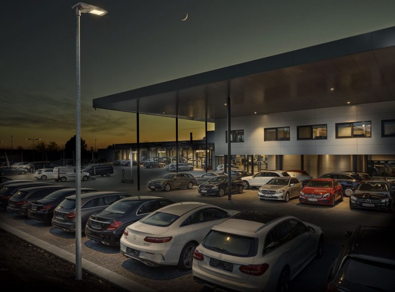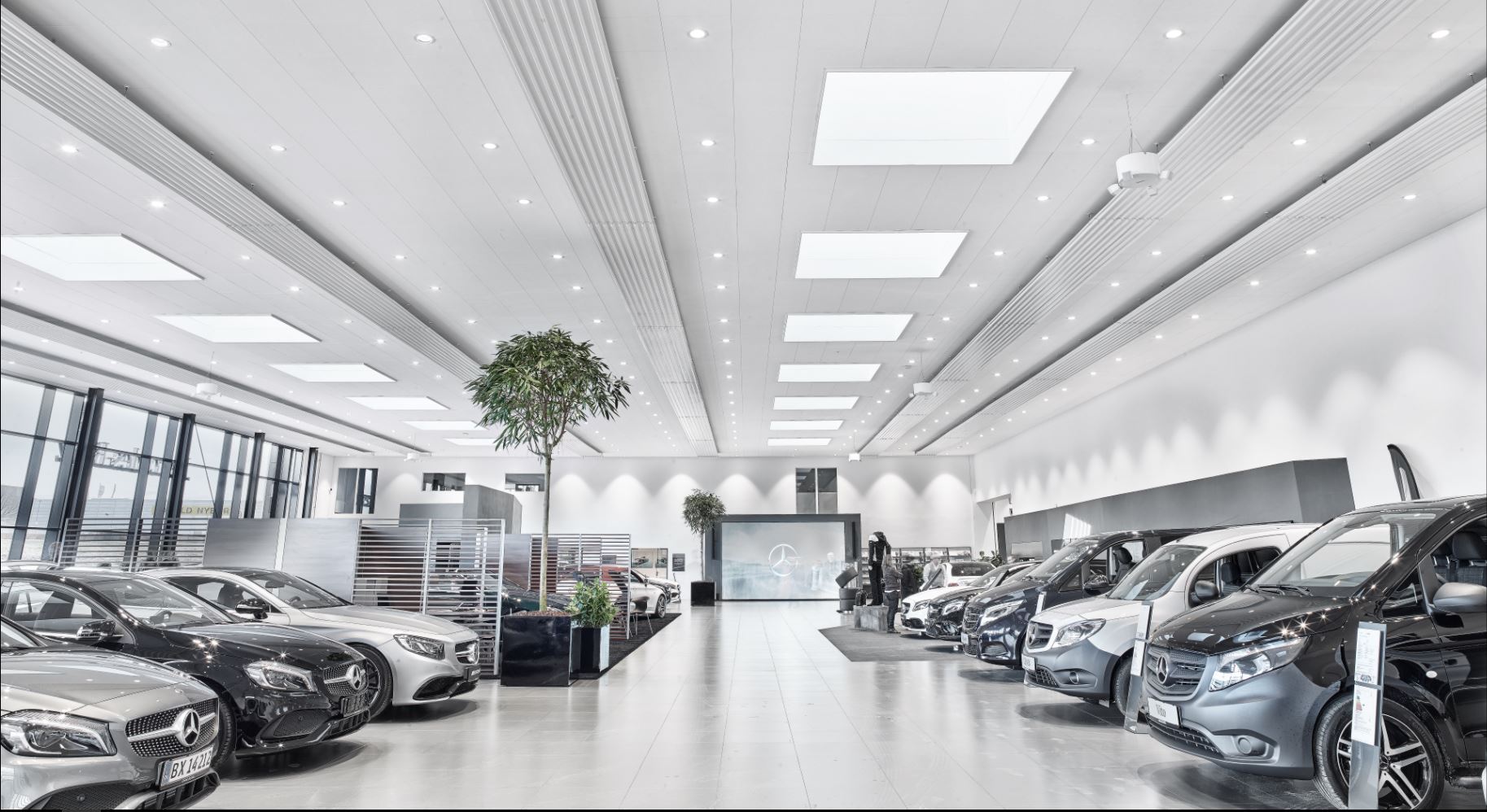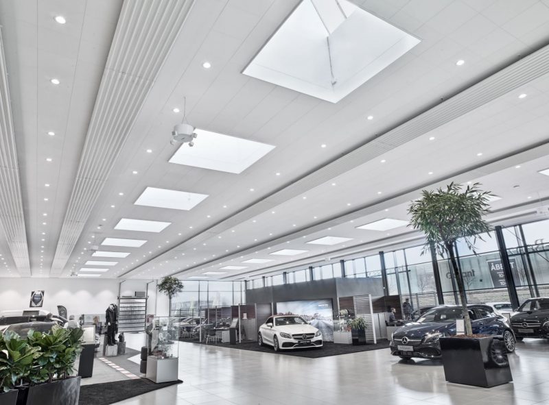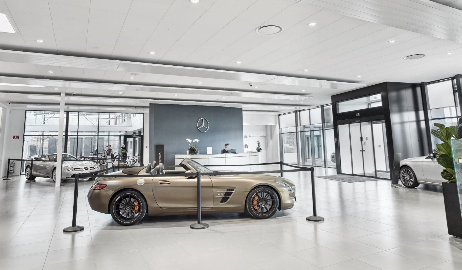 Facader på administration og udstilling er efterisoleret og beklædt med Alucobond plane sandwichplader som er limet på, hvilket giver et udtryk af lethed og elegance, som modsvares af bilerne.