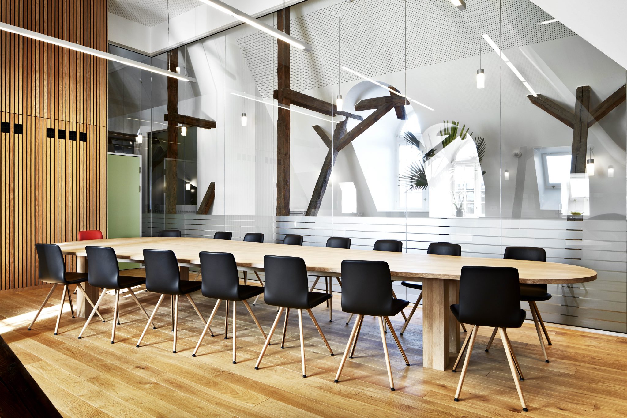 I niveau med det store ur i facaden er der nu indrettet kontor til retspræsidenten, og rettens 12 dommere har fået hvert deres kontor.