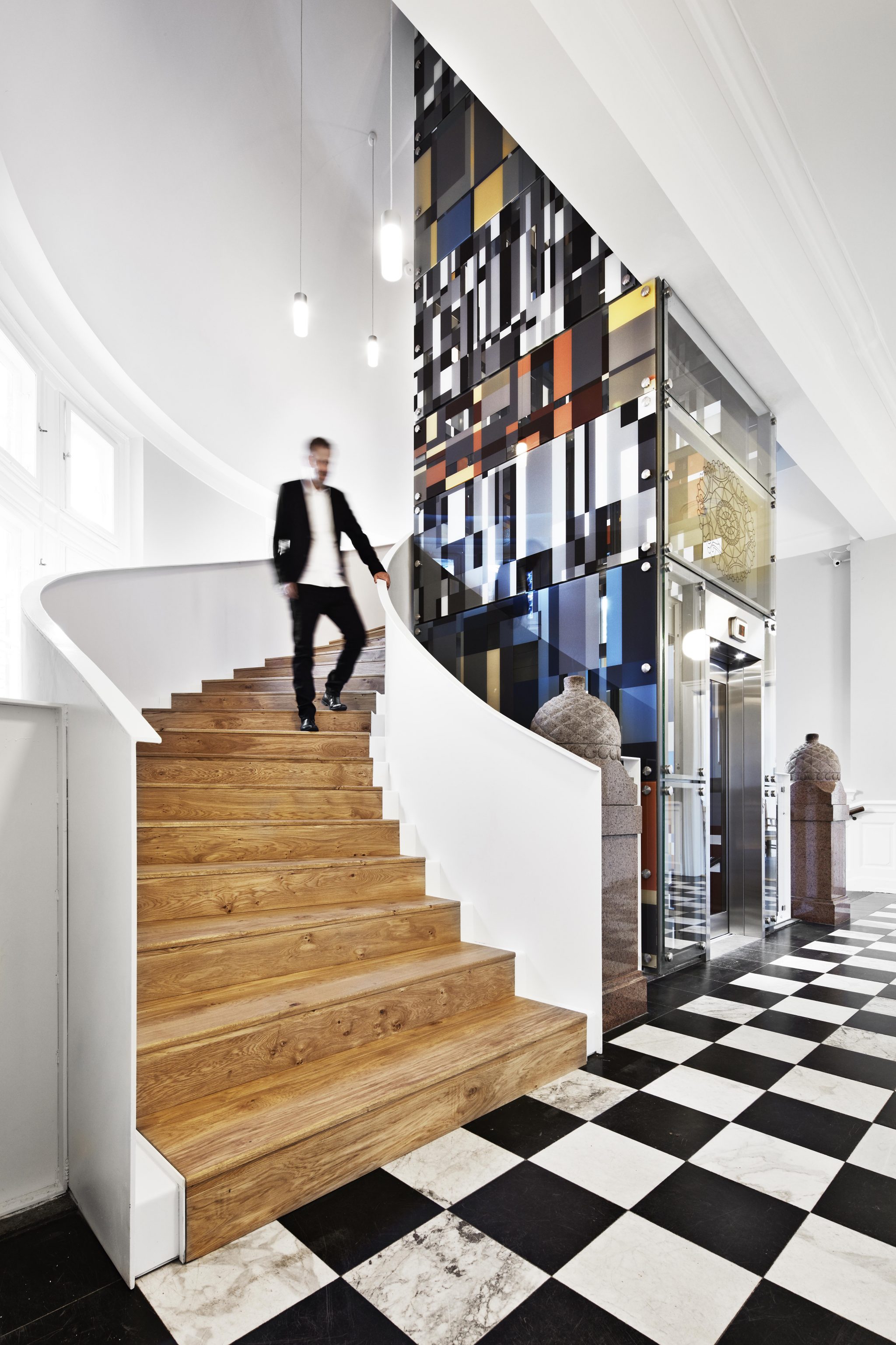 Kunstneren Marianne Grønnow har stået bag glasbeklædningen til bygningens indvendige glaselevator. Kunstværket følger elevatorens form og spiller op mod det oprindelige, horisontale værk af Hans Krull, der præger førstesalen.