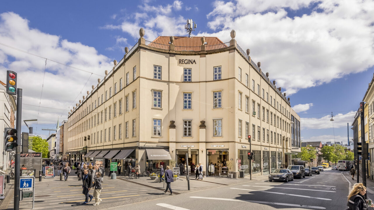 Midt på Aarhus’ pulserende gågade – i krydsfeltet mellem Rådhuset, Banegården og Domkirken, og omgivet af midtbyens huse, menneskemylder og butikker – ligger Regina-bygningen. Mere centralt i byen bliver det ikke.