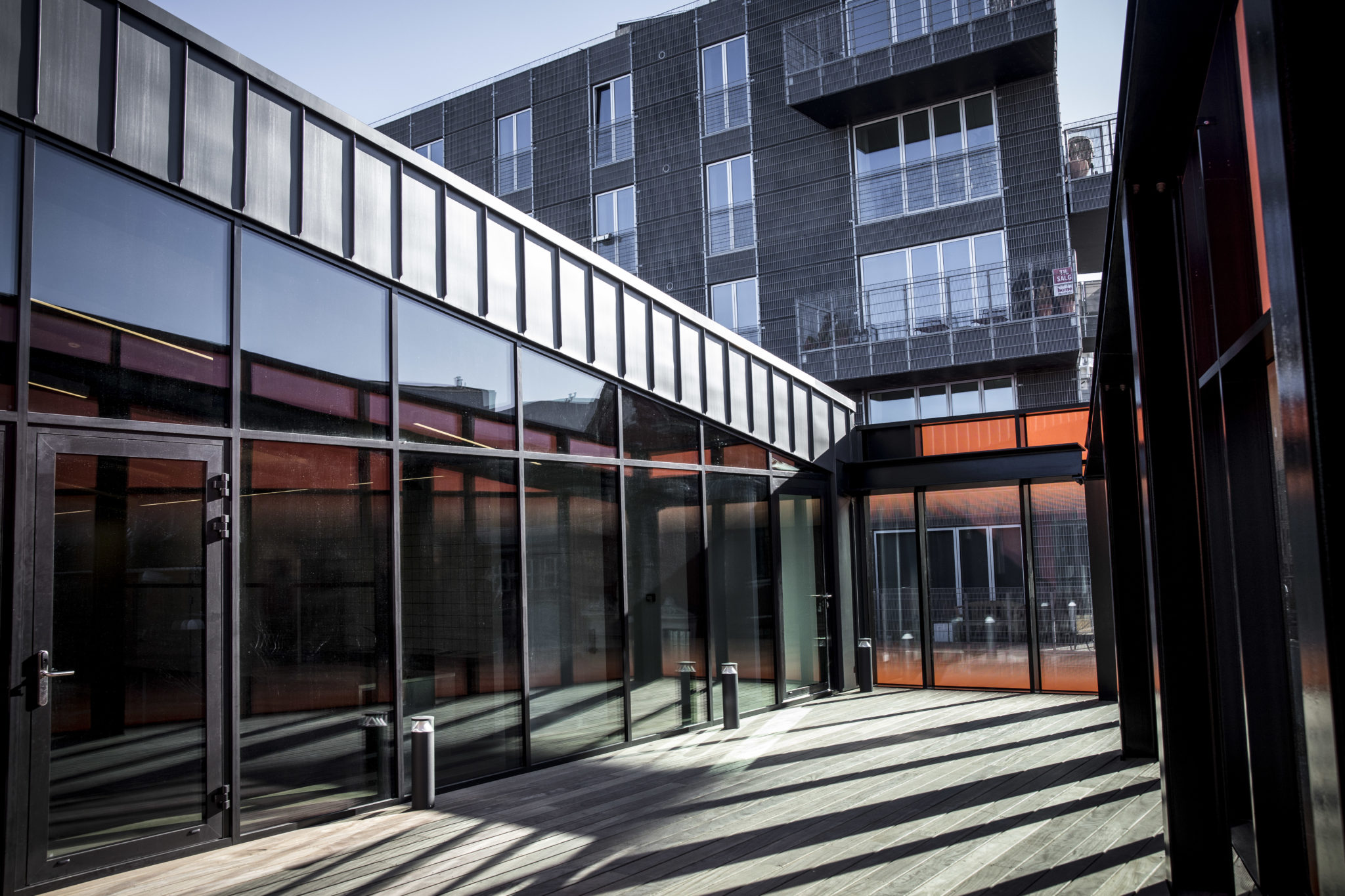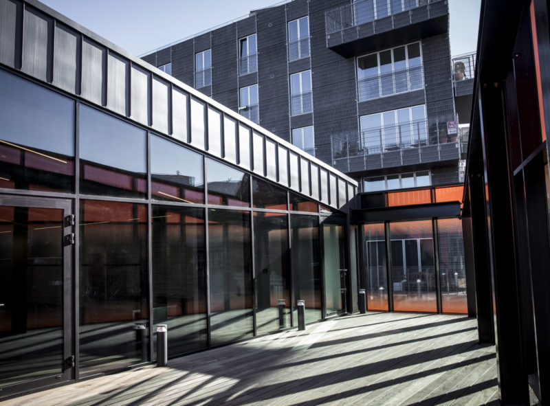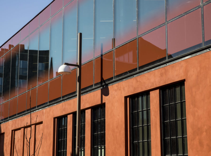 Den gamle facade blev strippet, og alt blev skiftet, isoleret og pudset op igen i den ikoniske, røde farve. De gamle vinduespartier blev udskiftet med store, energioptimerende 3-lagsruder - og med specialdesignede vinduesrammer, som fremhæver den gamle fabriks udtryk.