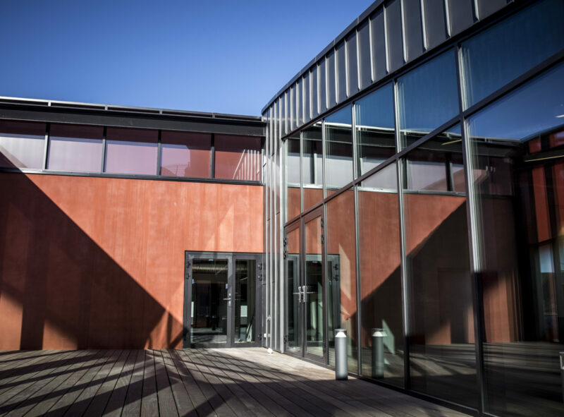 Løsningen blev en udbygning på første sal, som både taler visuelt ind i den eksisterende bygnings udryk og som opfylder de høje krav, der under projekteringen blev stillet til brugskvalitet og indeklima. Og mens de store spejlvinduer og det særlige rødpigmenterede glas har stor betydning for husets visuelle fremtoning, er disse elementer også en vigtig faktor for brugskvaliteten og det gode miljø.