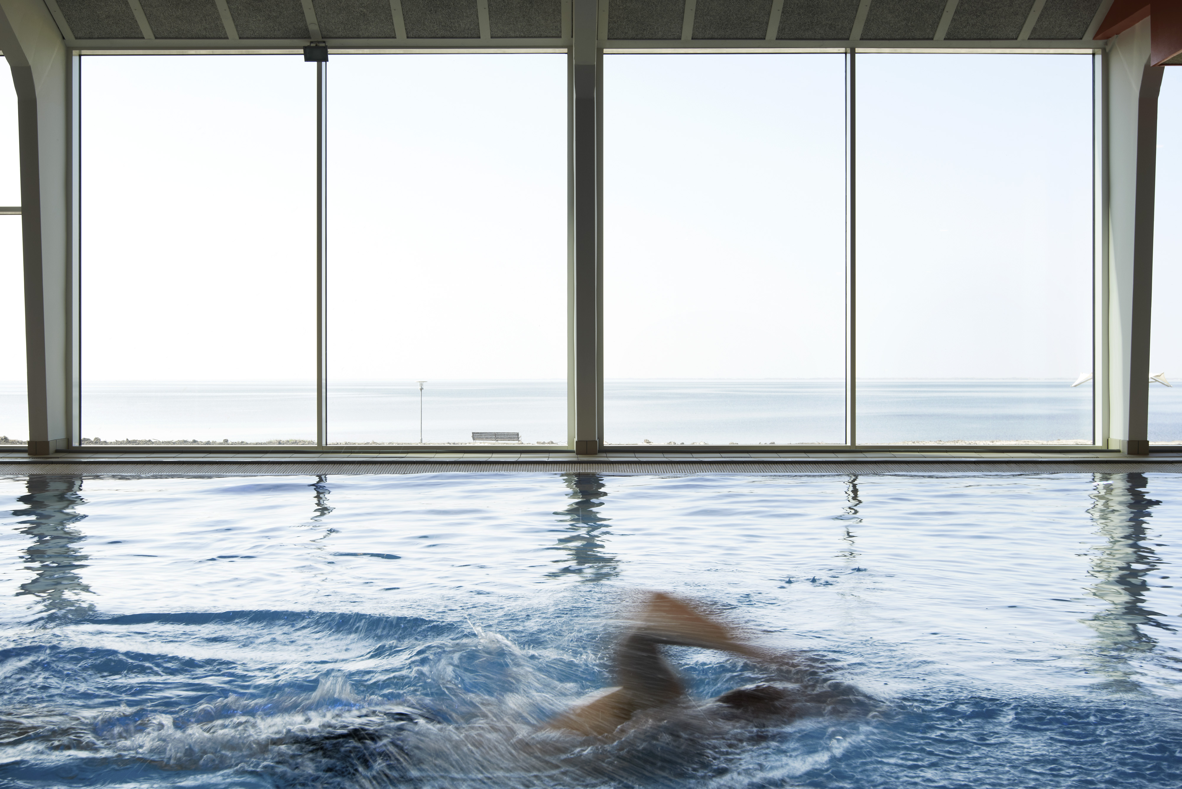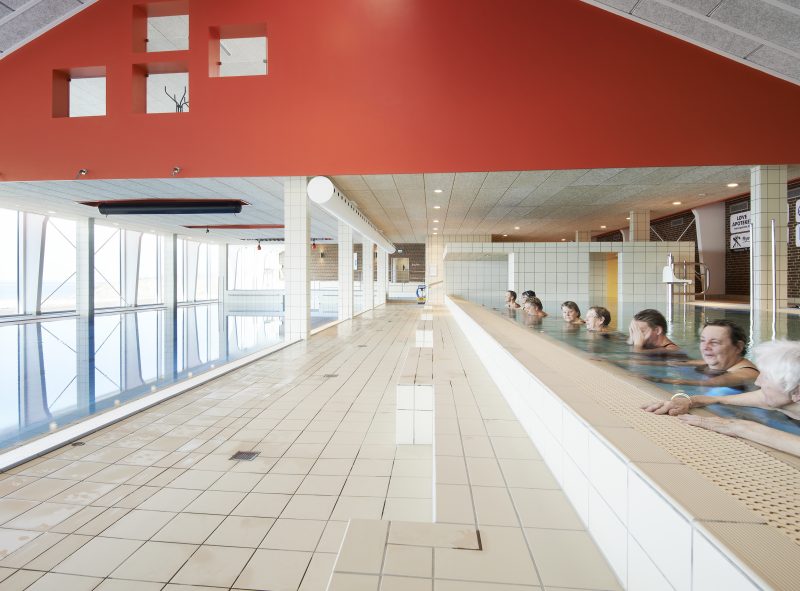 Mødet med Ringkøbing Svømmehals usentimentale, prunkløse hal-arkitektur i første parket til Ringkøbing Fjord varslede ikke umiddelbart om en eksemplarisk og banebrydende renovering. Det bliver der godt og grundigt lavet om på, når man med blå beskyttende smudsovertræk til skoene møder den udstrakte udsigt til Ringkøbing Fjords reflekterende flade og hallens renoverede bassiner.