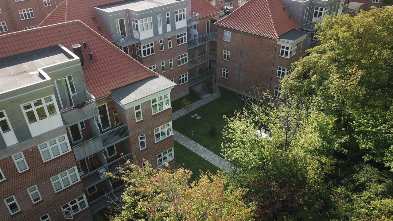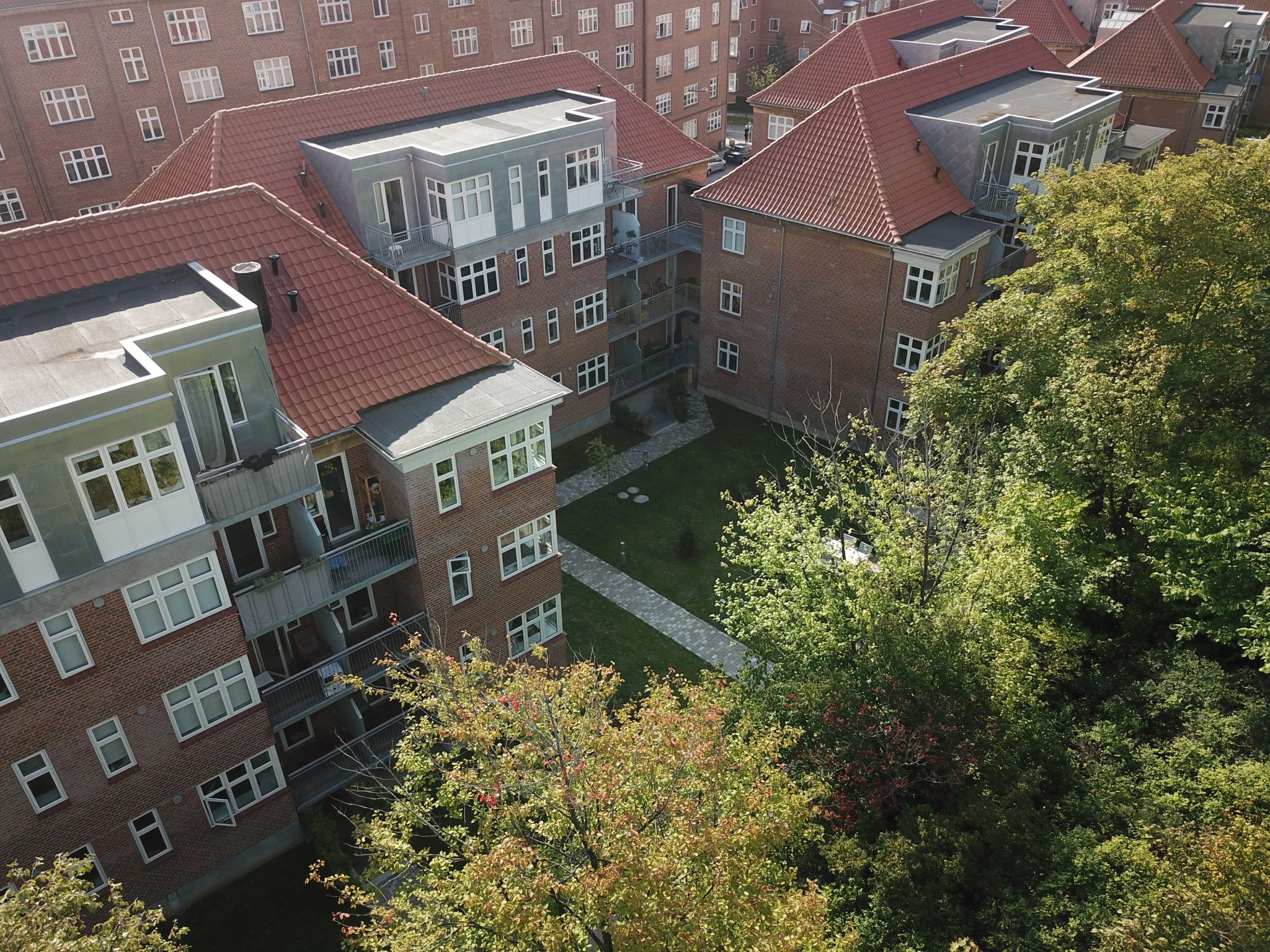 Eksempel på udvikling af tagboliger og tilbygning i eksisterende boligmasse. Byggeriet er nænsomt udbygget bagtil i det eksisterende udtryk, og der er etableret altaner indpasset i bygningskroppen. Bygningsdetaljerne i facaderne, der kendetegner bygningens karakter, er bevaret. Desuden er tidligere panoramavinduer erstattet med vinduer i den oprindelige opdeling, så bebyggelsen fra gaden igen opleves, som da den stod færdig i 1930’erne.