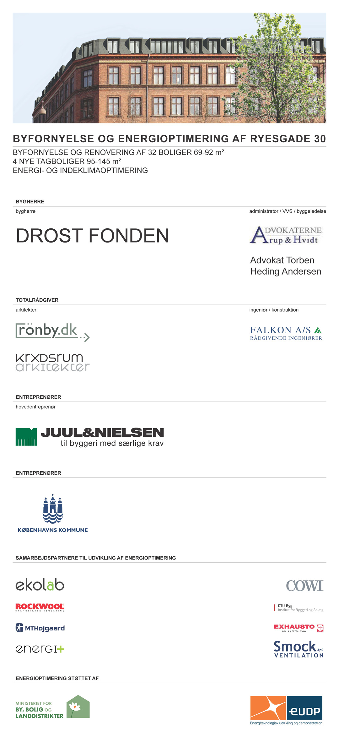 Ryesgade 30 A – C er et fint eksempel på en historisk københavnerejendom, hvor det på fornem vis er lykkes at kombinere kulturhistoriske og arkitektoniske hensyn med forbedret funktionalitet og markante besparelser på energiforbruget.