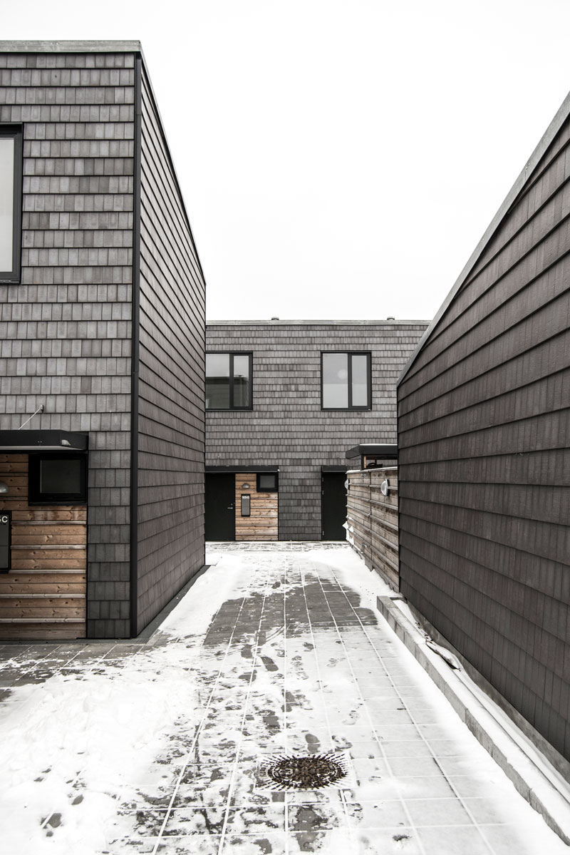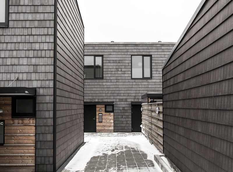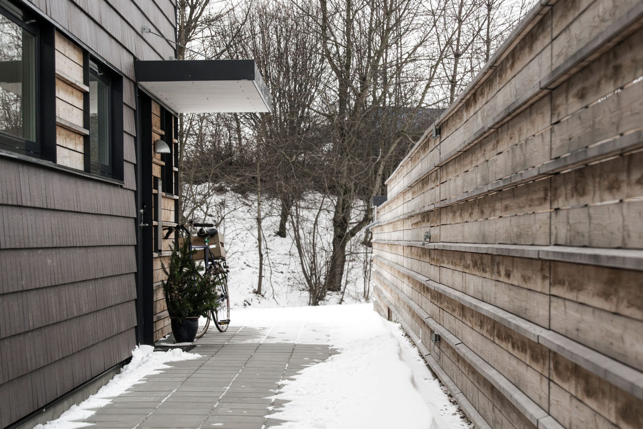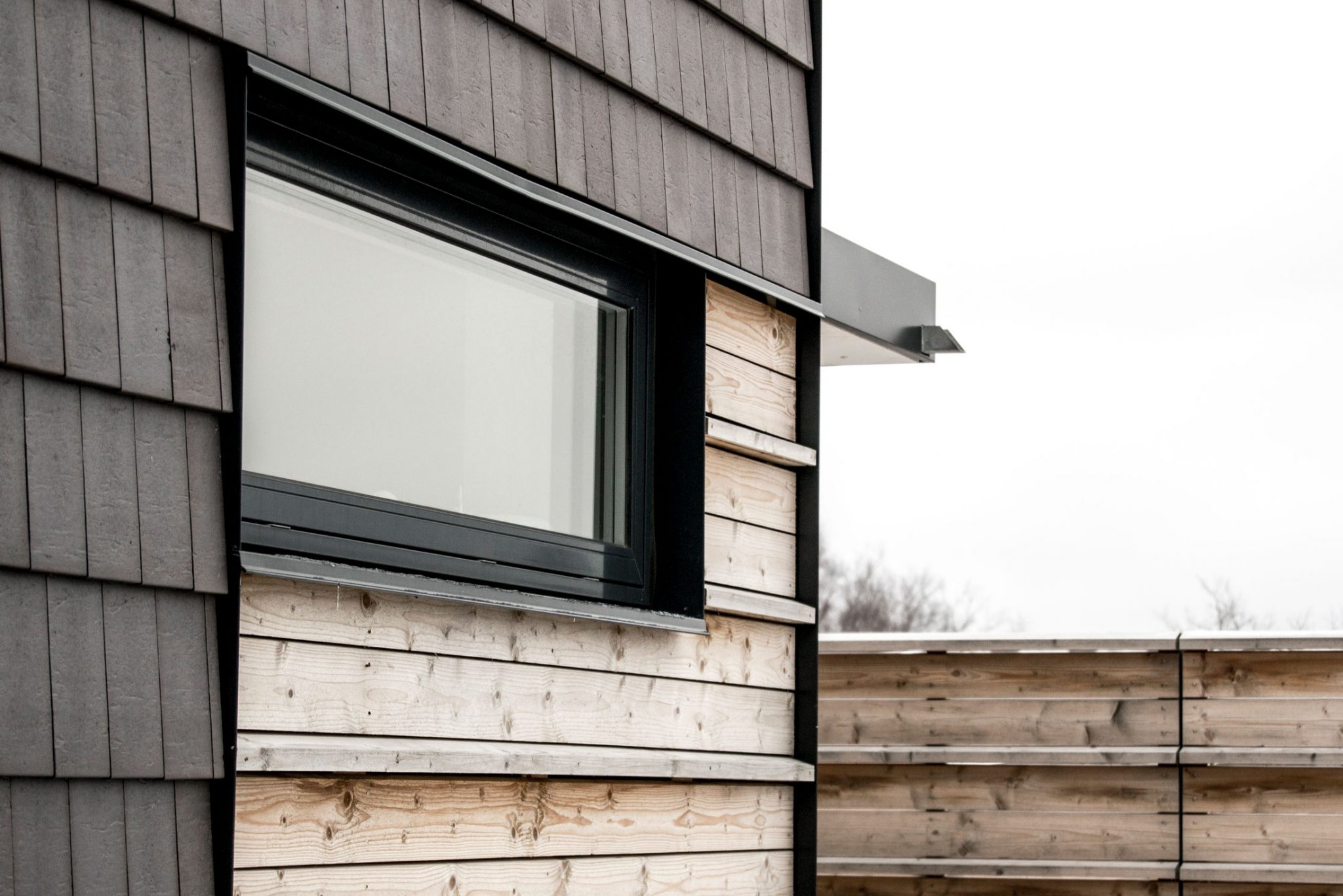 I Ryhaven er anvendt materialer, der patinerer smukt over tid. Facaderne er beklædt med teglspån og træ. Da Ryhaven er udført som præfabrikeret modulbyggeri har der været tid til at kære om detaljerne på værkstedet. Udførelseskvaliteten er derfor høj.