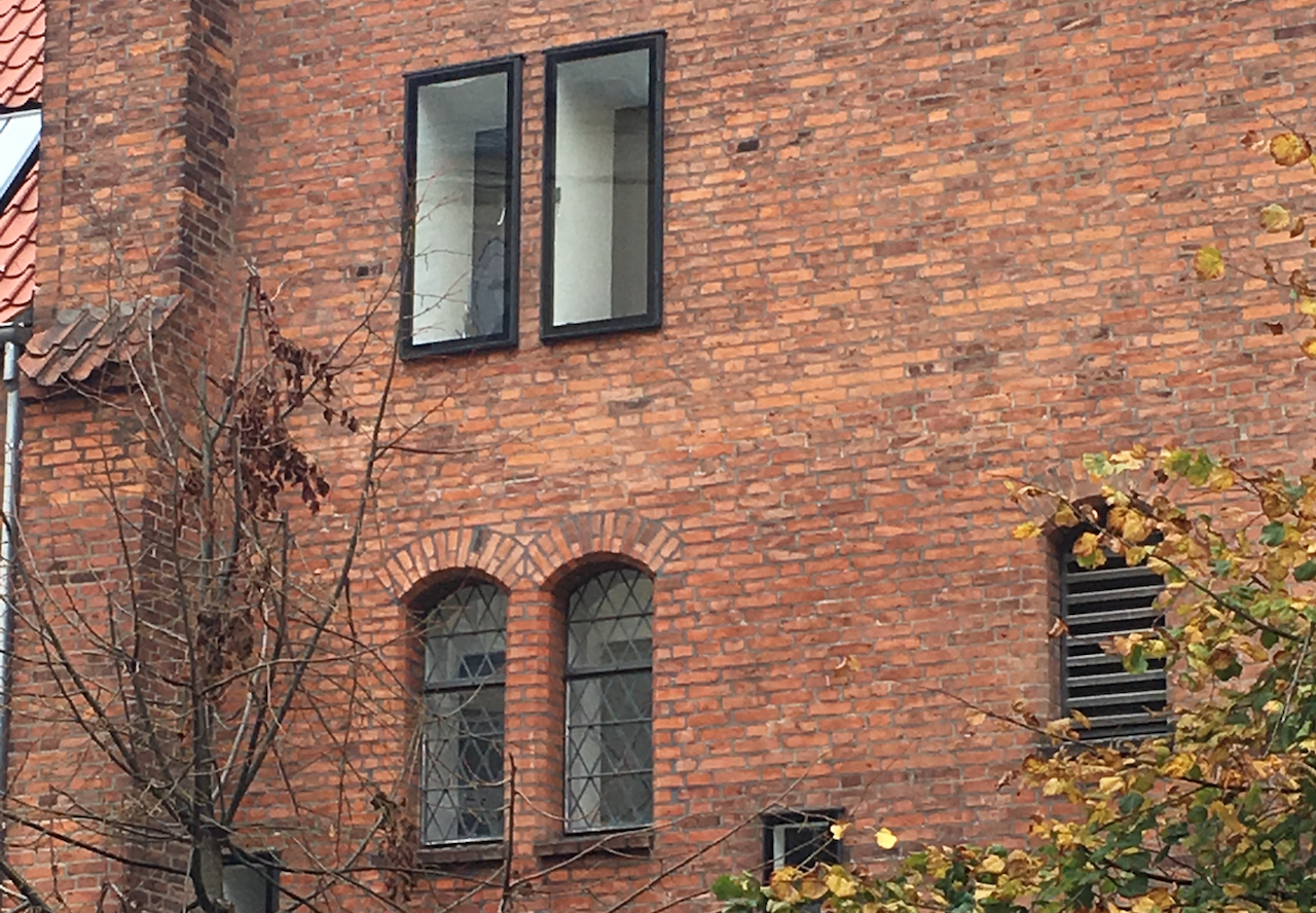 Kirkebygningens karakter er domineret af massivt murværk, oprindeligt med få huller til vinduer og døre. Det træk er bevaret. De fleste vinduer, specielt i kirkeskib og gavl, er bevaret. For at sikre krav til dagslys og udkig i boligerne er der slået mange nye huller i murene. Nye vinduer og karnapper er sat udenpå de massive mure, med respekt for bygningen, men også for at synliggøre nyt og gammelt.