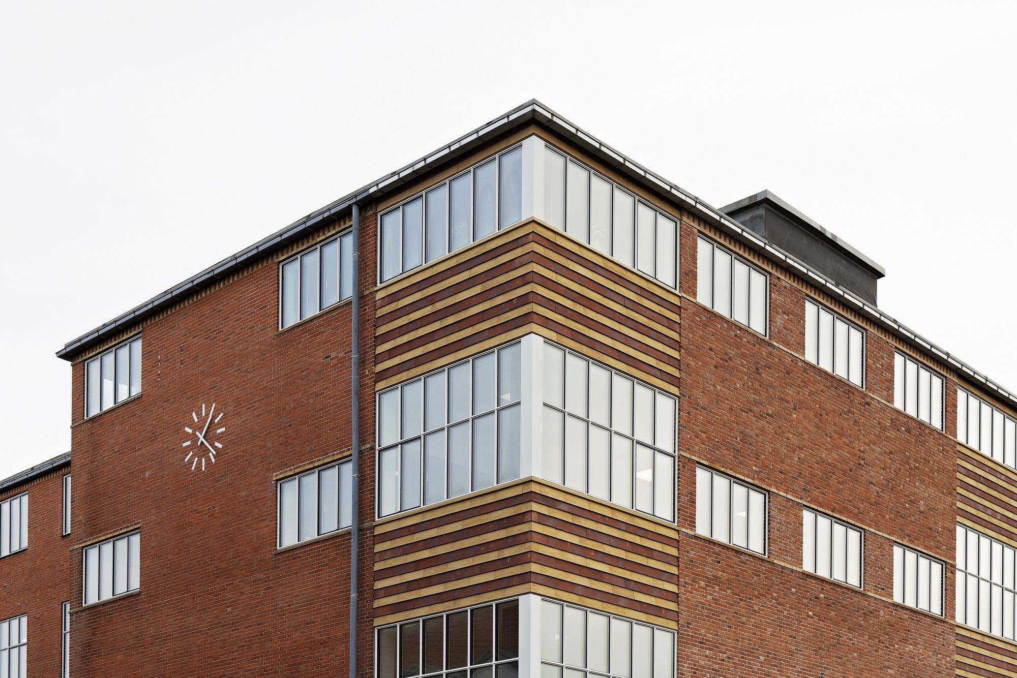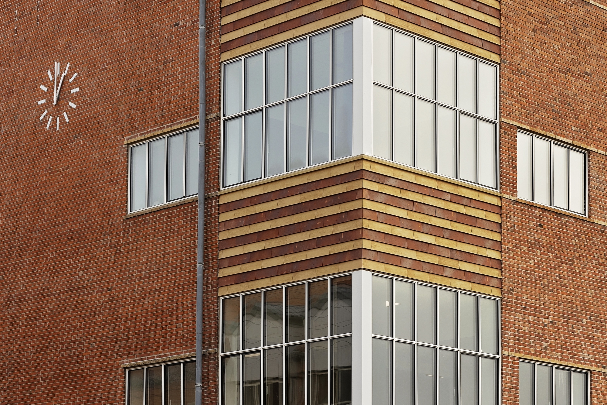Facaderestaurering med ønske om en tilbageførelse til den oprindelige funktionalistiske arkitektur, herunder vinduesformater og murværksdetaljer.