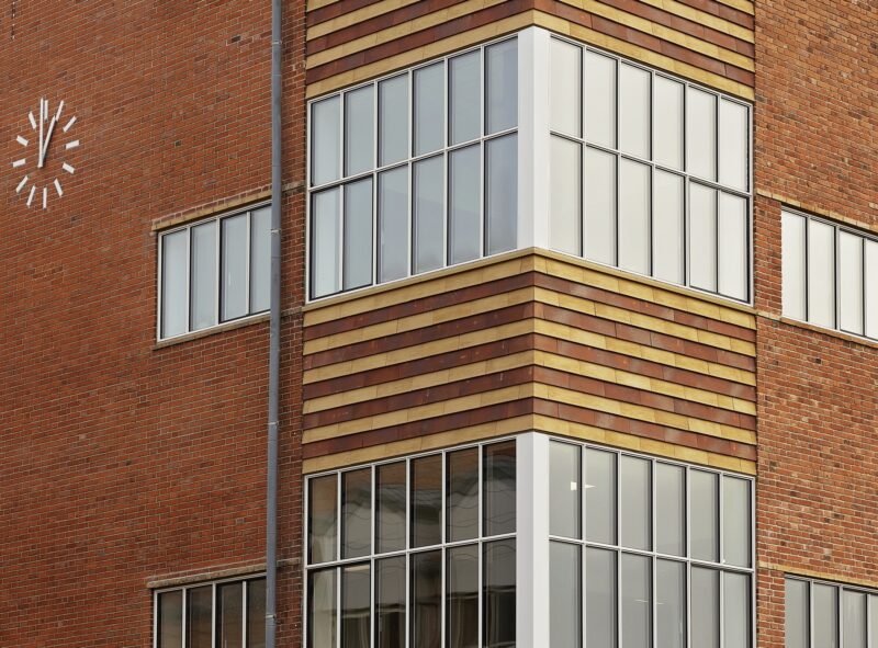 Bygningskompleksets vinduer og døre var udtjente, og stod til udskiftning. I forbindelse med udskiftningen blev der valgt en vinduesdesignet tilbageført til en funktionalistisk stil. De tidligere åbne altaner er forsøgt gjort aflæselige i det nye facadeudtryk.