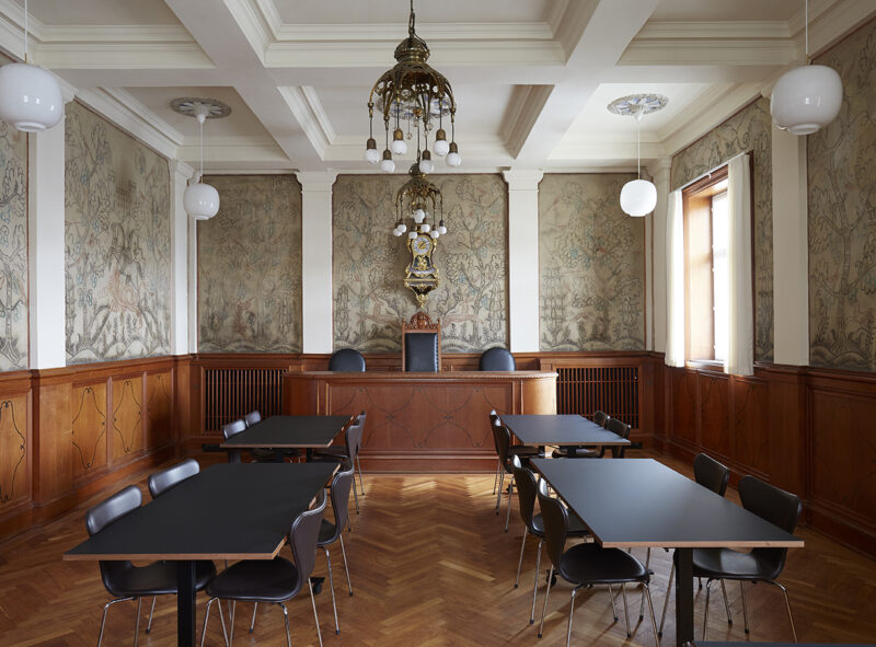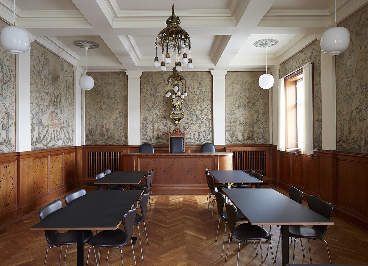 Siden bygningen er fredet, er hele projektet udviklet i dialog med Slots- og Kulturstyrelsen, og de konkrete løsninger er udført i samarbejde med specialiserede håndværkere og konservatorer, der har istandsat de store fresker med lokale motiver, der pryder byrådssalens vægge.