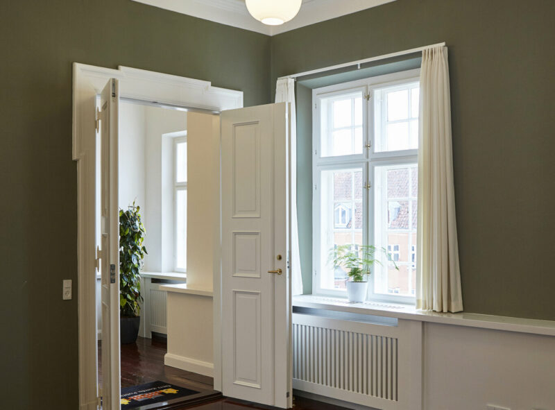 Skanderborg Gl. Rådhus er blevet et karakterfyldt og funktionelt kontorfællesskab med over 700 kvadratmeter fællesfaciliteter, hvor de bevarede detaljer og genskabte rum skaber rammen om moderne arbejdspladser i en historisk ramme.