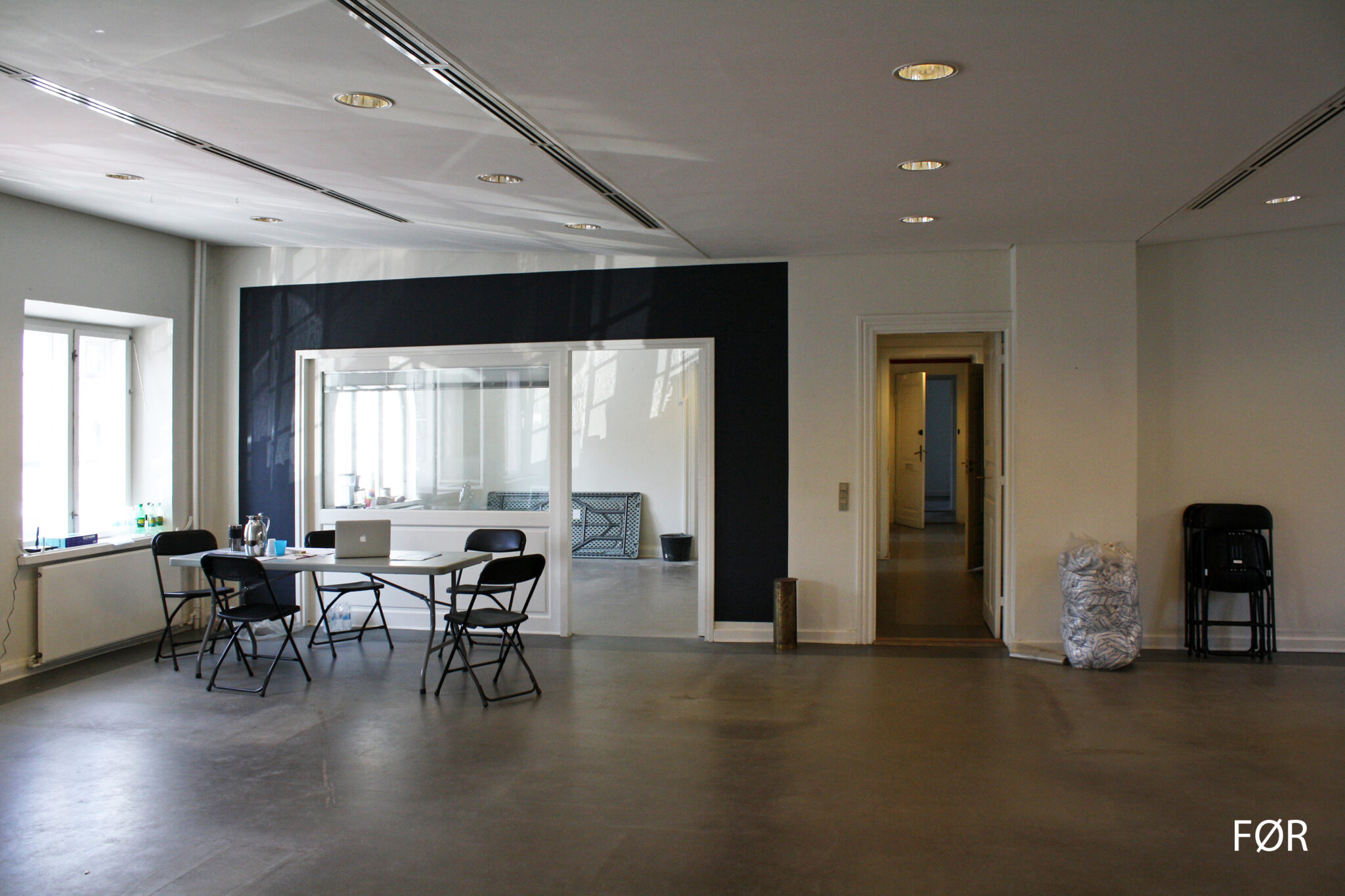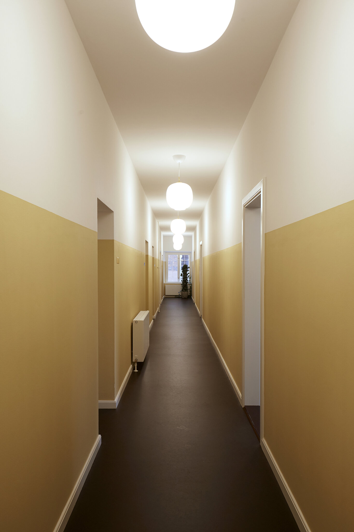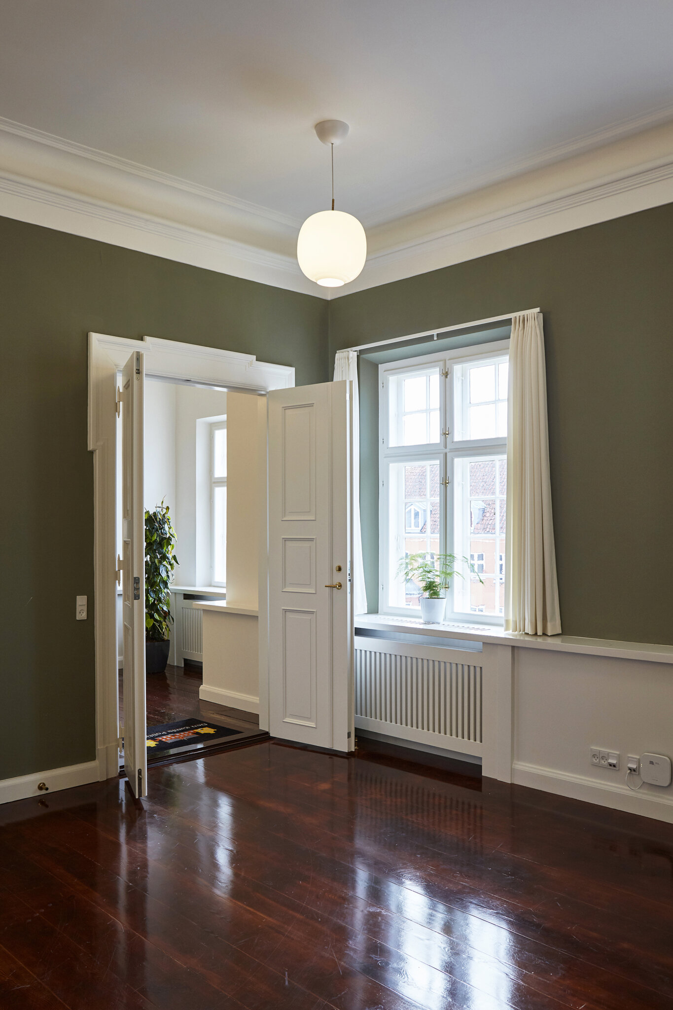 Selvom alt el, VVS og varme er nyt, er det lykkedes arkitekten at skabe en nænsom løsning på de nye installationer i den gamle arkitektur. De nye installationer er trukket bag lave paneler under vinduerne, der passer til rummets karakter.