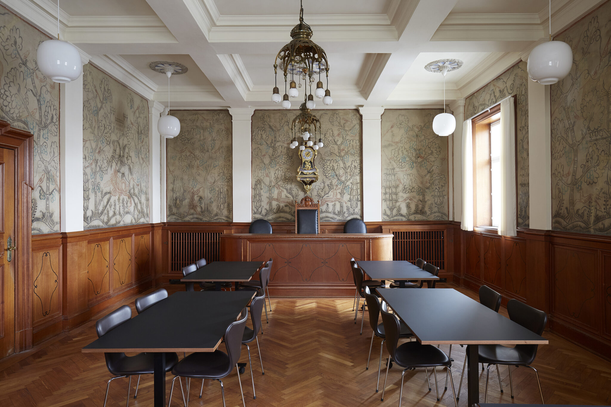 Siden bygningen er fredet, er hele projektet udviklet i dialog med Slots- og Kulturstyrelsen, og de konkrete løsninger er udført i samarbejde med specialiserede håndværkere og konservatorer, der har istandsat de store fresker med lokale motiver, der pryder byrådssalens vægge.