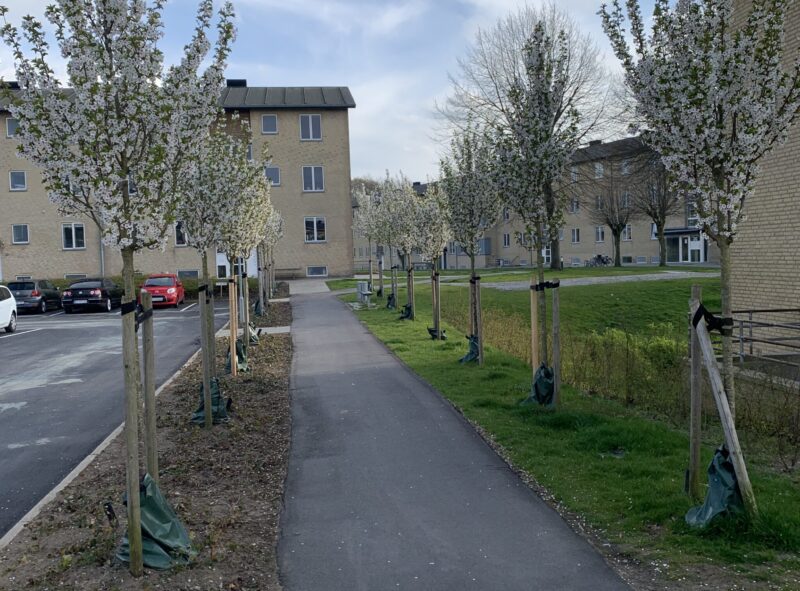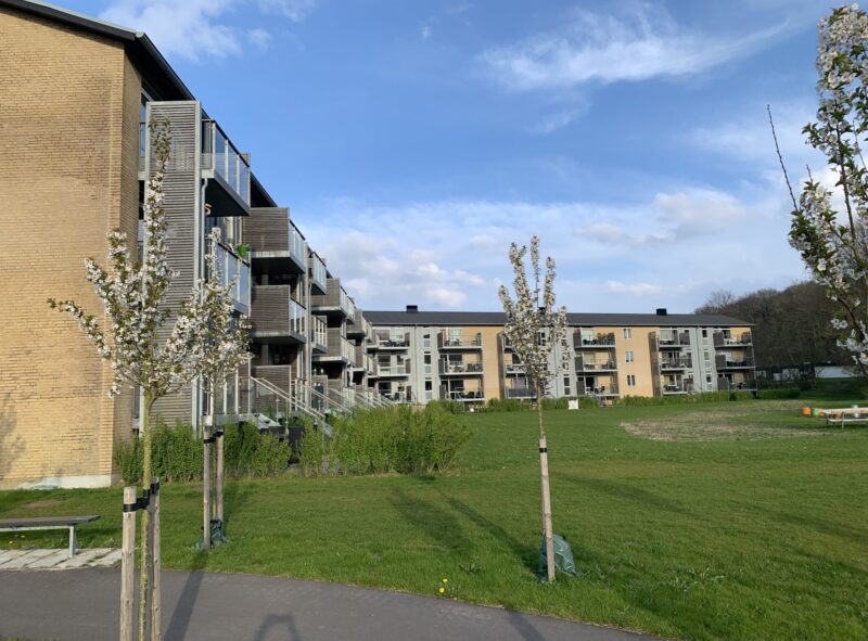 Tiltag umiddelbart tæt på boligerne såsom egne haver i stueetagen og udepåliggende altaner på de øvrige etager har ligeledes tilført noget i forhold til det sociale nærvær.