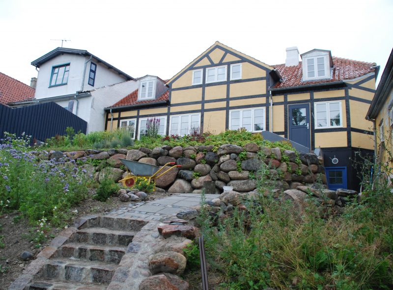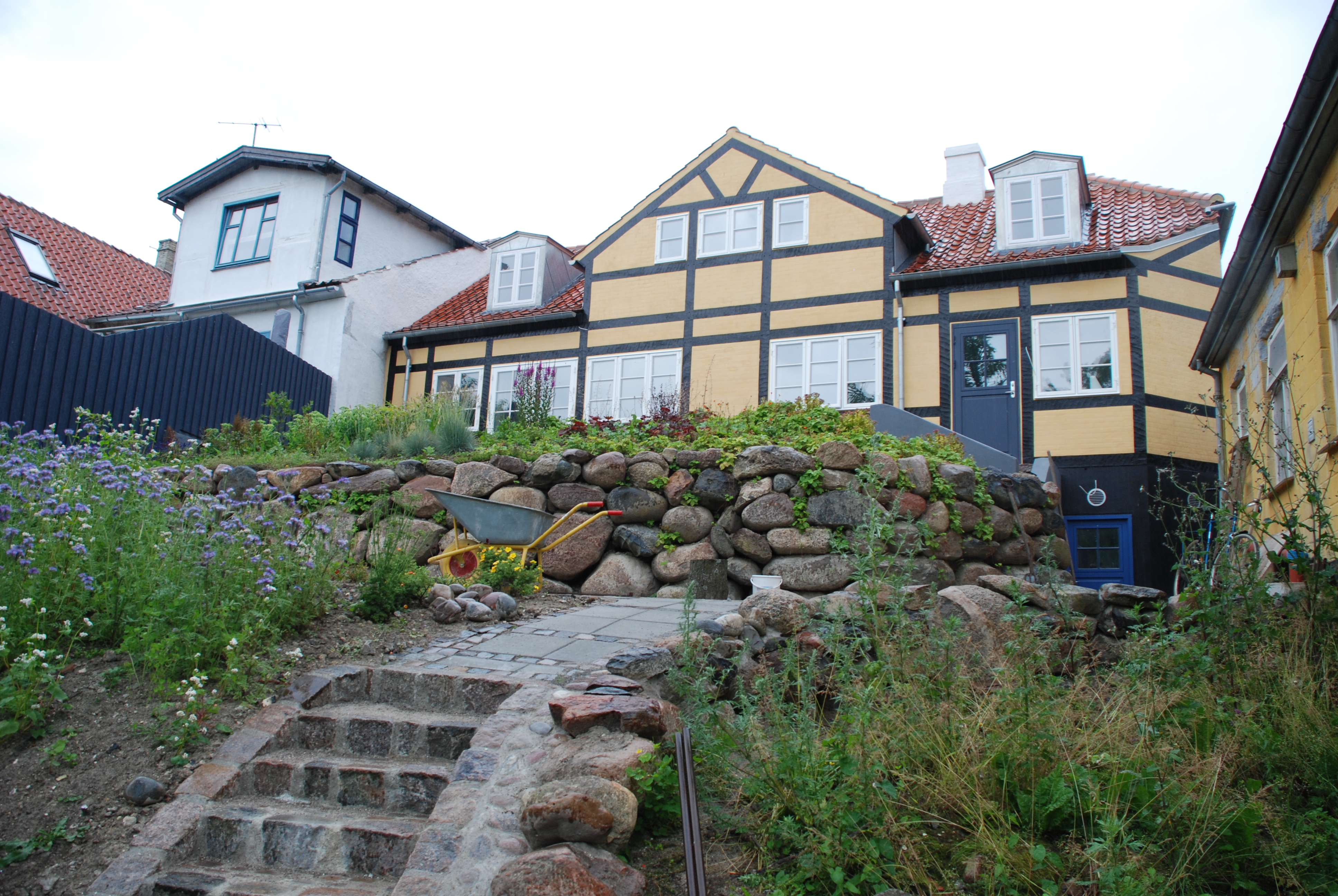 Blev renoveret. Pga bevaringsplan måtte det ikke rives ned og bygges op igen. Så vi understøttede tagkonstruktionen, og fjernede vægge og syltstenssokkel. Støbte under soklen, isolerede og drænede. og satte syltstenene tilbage. Nyt bindingsværk blev håndhugget på den synlige flade. Husets bagside med de røde mursten blev også bindingsværk. Og tegltag, genbrug. indvendig har vi fået en velisoleret, moderne bolig, med et gammelt udtryk. Udvendig har det pyntet voldsomt i gaden, da huset har en markant placering i gadebilledet..Det hele er afsluttet med pikstensbelægninger og fliser samt fine trapper.