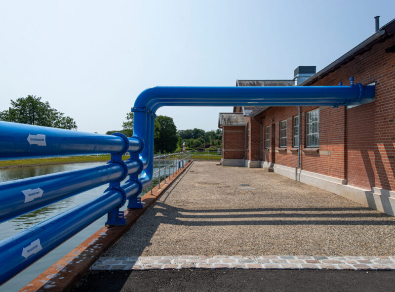 • Den oprindelige vandværksbygning i rødt murværk er bevaret som arkitektonisk hovedvolumen og danner fortsat ramme om vand- og energirelaterede funktioner.