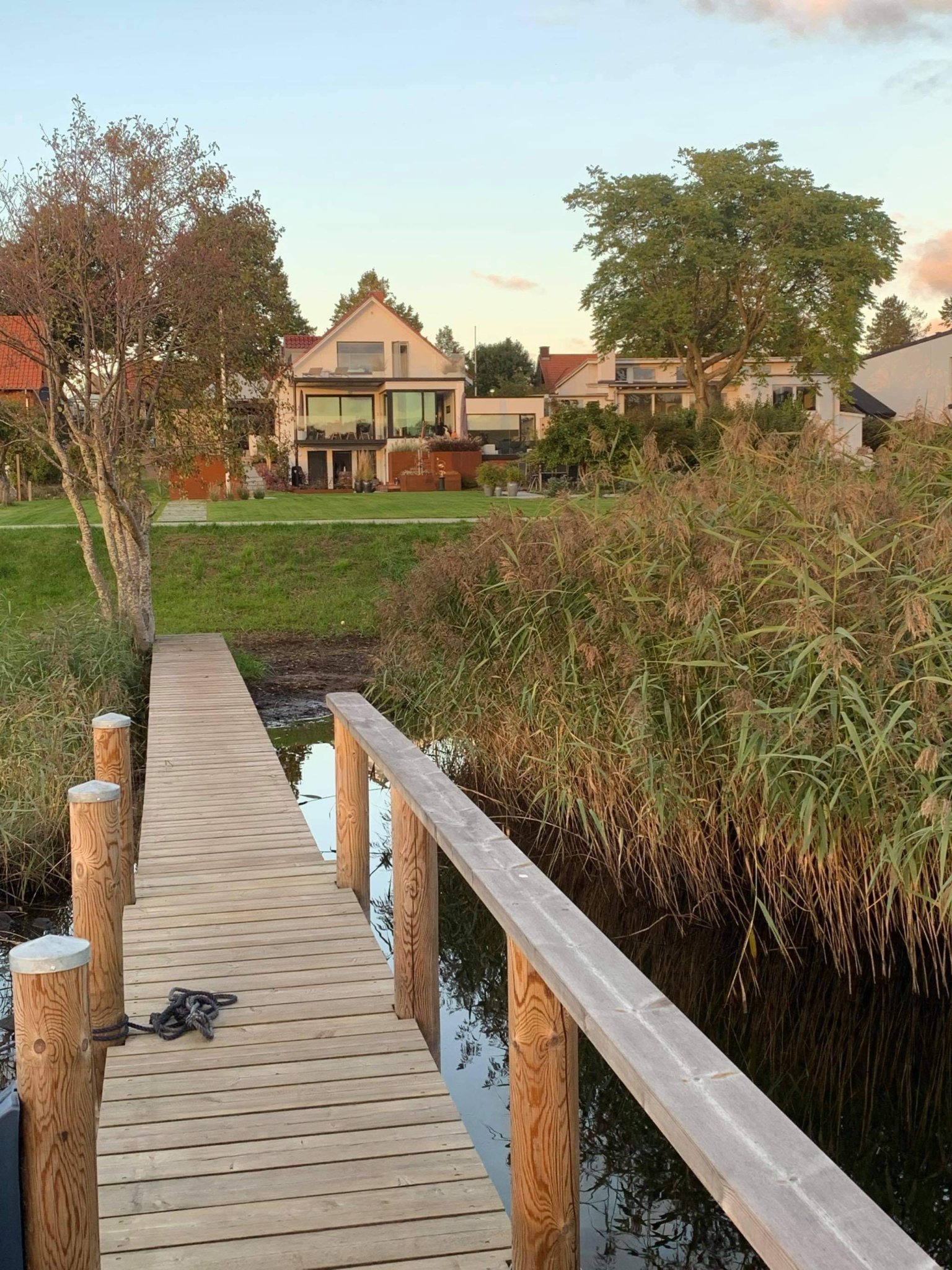 Da huset er en ældre dame krævede åbning af hele husets facade mod søen en tæt dialog med arkitekt og ingeniør om design, bæreevne og sammenhæng hele huset rundt udvendig og indvendigt for at skabe en moderne bolig i samspil med natur, sø og oprindelig murmester villa stil fra tidsalderen. Resultatet er et hus, hvor søen og haven er smeltet sammen med huset og med en åbenhed, der har skabt inspiration til at åbne mere op hos andre sø-lod ejere i det ellers lukkede huse og haver langs Langsøen.