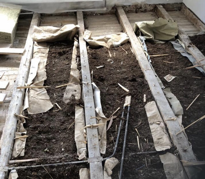Da byggeriet af ejendommen startede i 1941 under krigen hærgen i Europa var materiale valget kraftigt reduceret og det er kommet tydelig frem under renoveringen, at der flere steder i boligen har været svære betingelser. Da huset langsomt blev åbnet op kom tagrør fra søbreden, isolering med tørv og spagnum på et underlag af gamle aviser frem og en historisk renovering ender med at dvæle ved historier og overskrifter som da ”Churchill i Amerika og forhandle med Roosevelt”, ”Tyskerne stå 3 km fra Sebastopols havneindløb”, ”Den 8. engelske armé på retræte ved den ægyptiske grænse”, ”De australske flyvere angriber den japanske invasions flåde” og samtidig blev huset bygget mens smukke klassiske traditioner ramte overskrifterne i aviserne med ”Smukke danske sommer studenterne danser i hvide kjoler om det danske flag".