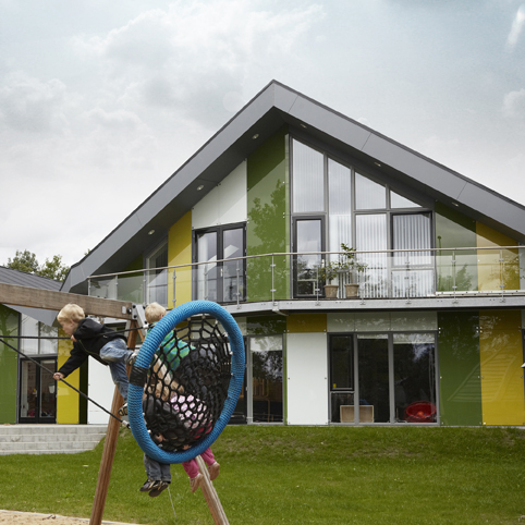 Det arkitektoniske motiv er en nutidig fortolkning af den eksisterende bygnings karakteristiske sadeltage, med integrerede bæredygtige løsninger. Tilbygningens asymmetriske sadeltagsfoldning og vifteformede planløsning tilfører hele anlægget et moderne og tidssvarende udtryk såvel arkitektonisk, funktionelt og organisatorisk.